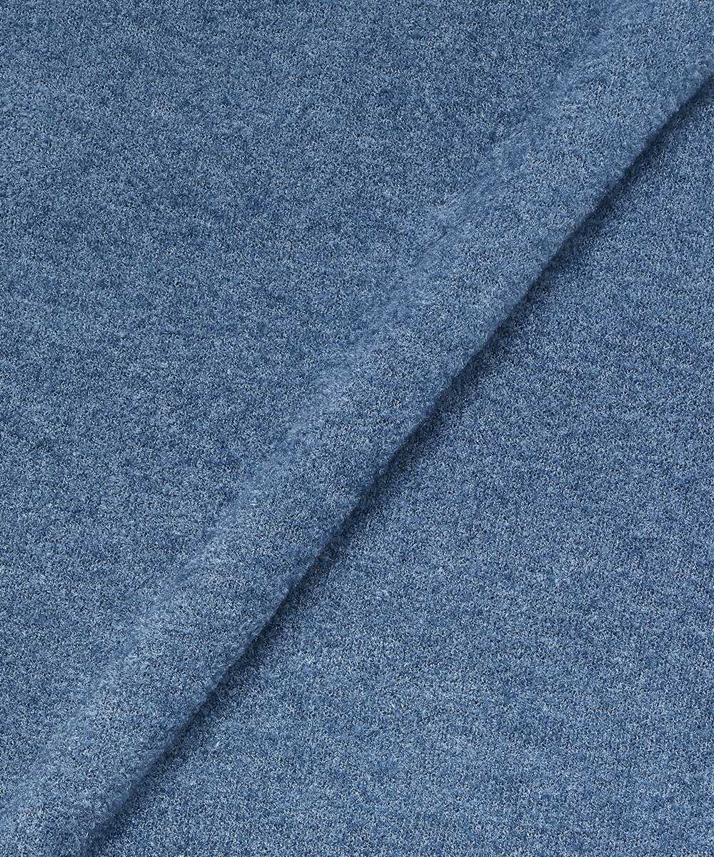 ベロアのような微光沢を備えた、高級感あふれるパイル風のニット素材を採用。これがカジュアルになりすぎず絶妙な塩梅の高級感をもたらしてくれる。さりげないブランドタグもアクセントに。
