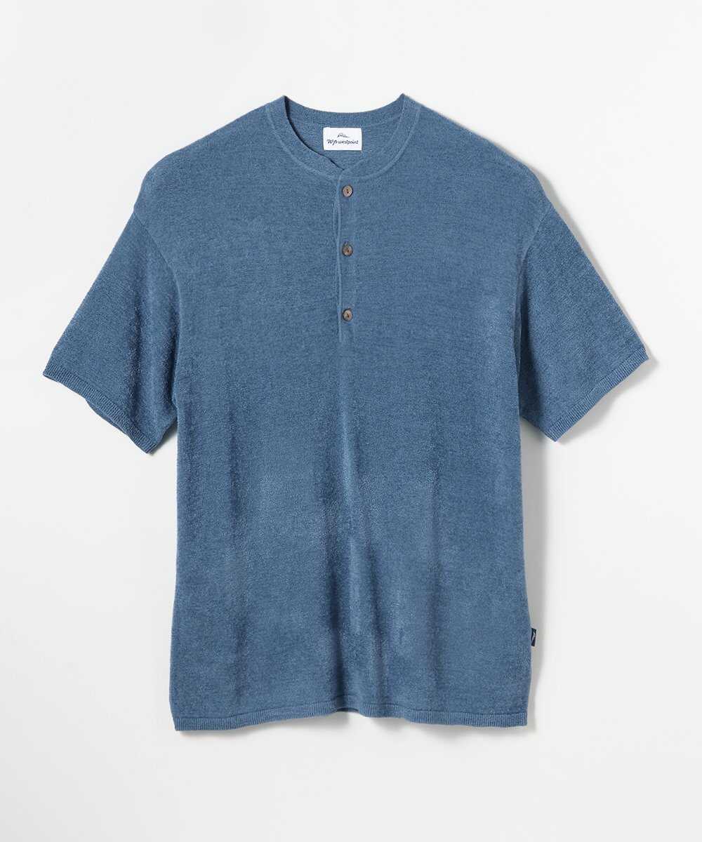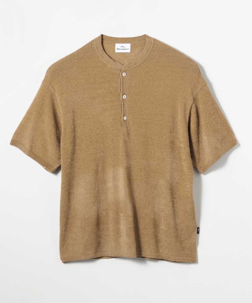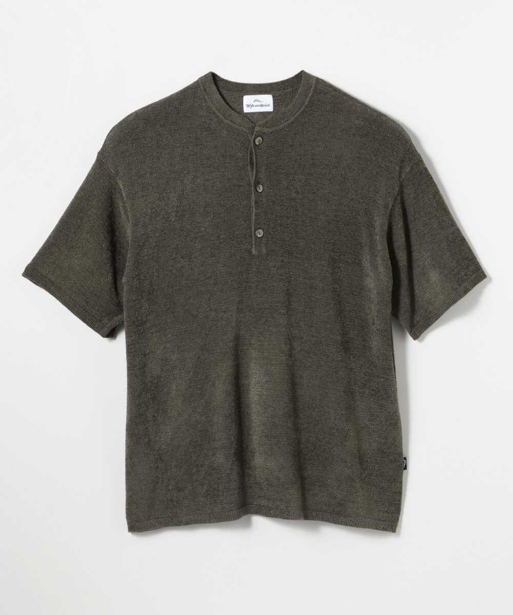 限定 パイル風 ふんわり ストレッチ ヘンリーネック サマーニットT