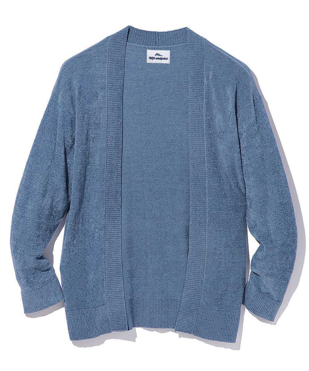フロントボタンを省いたシンプルなデザインで荷物にならない軽やかさを併せ持ったカーディガン。リラックスムードたっぷりな仕上がりで、着ないときは腰に巻いて着こなしのアクセントにするのもおすすめ。