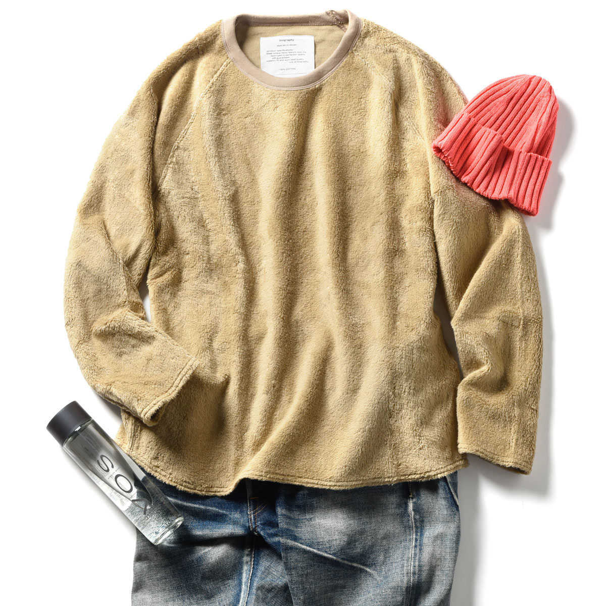 毎シーズン好評のカットパイルスウェットが、この秋はリバーシブル仕様にアップデイト。『バイオグフィー』らしいパイルとオーソドックスな天竺で構成されており、表裏で全く異なる表情が楽しめる。ラウンドカットの裾やラグランスリーブなど、ラフさを盛り上げるディテールにも注目。