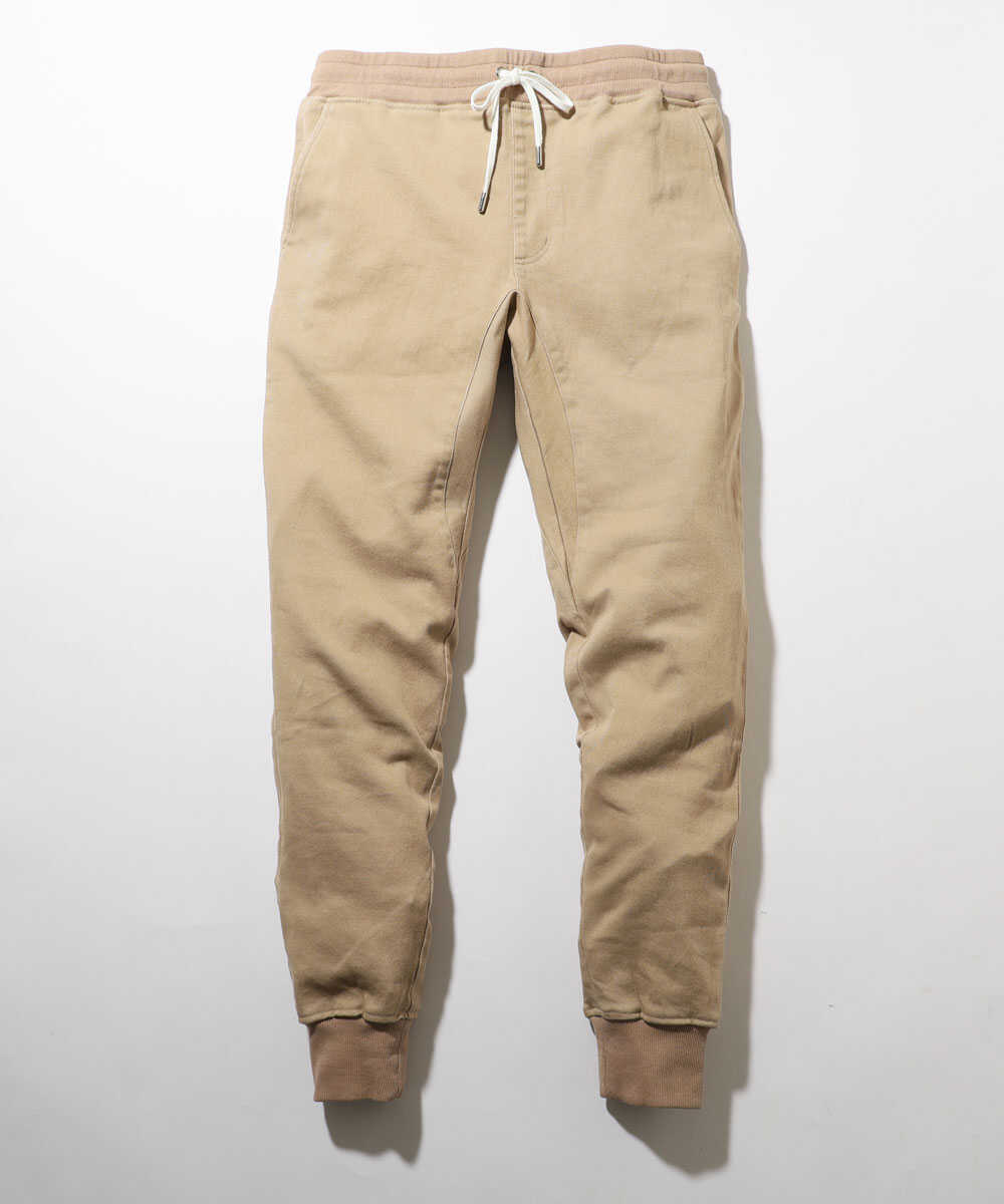 限定 テイパード デニム風 裾リブ ストレッチツイル イージーパンツ