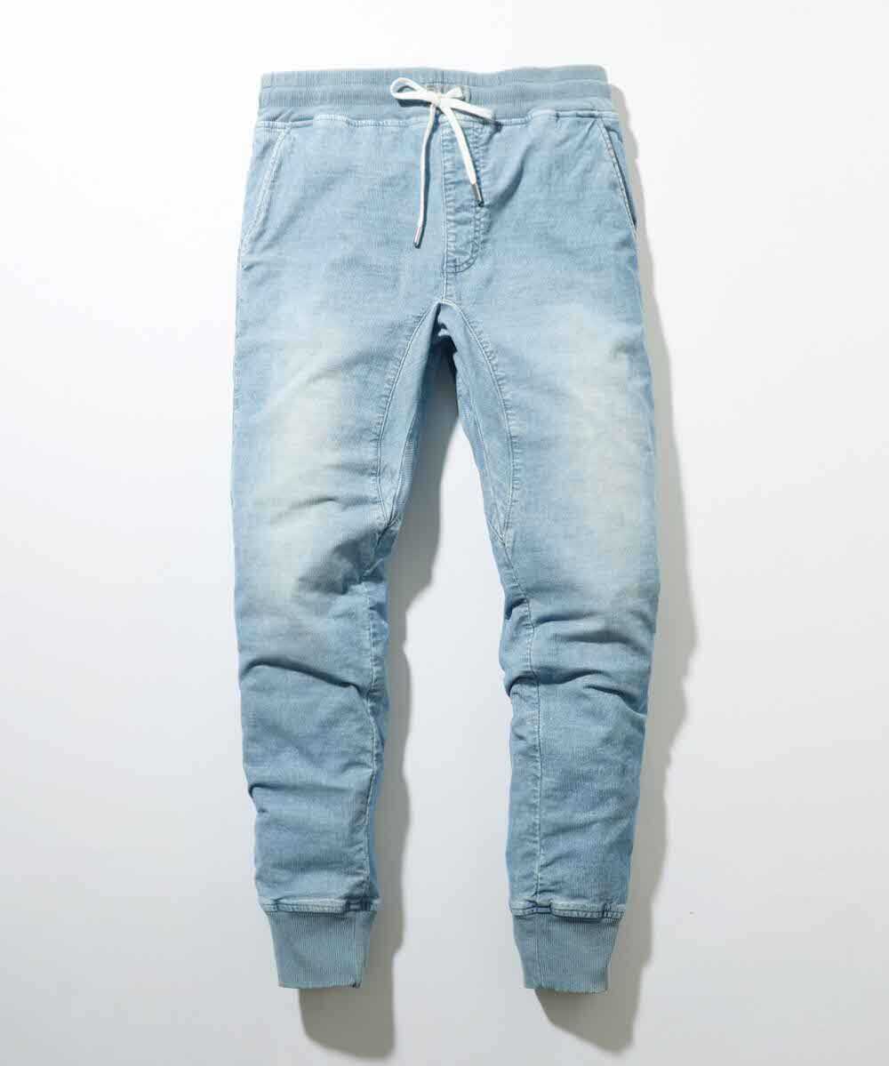 限定 ストレッチコーデュロイ 褪せブルー イージーパンツ
