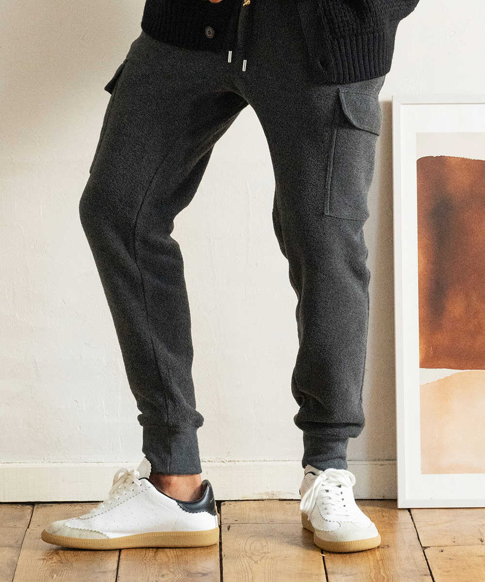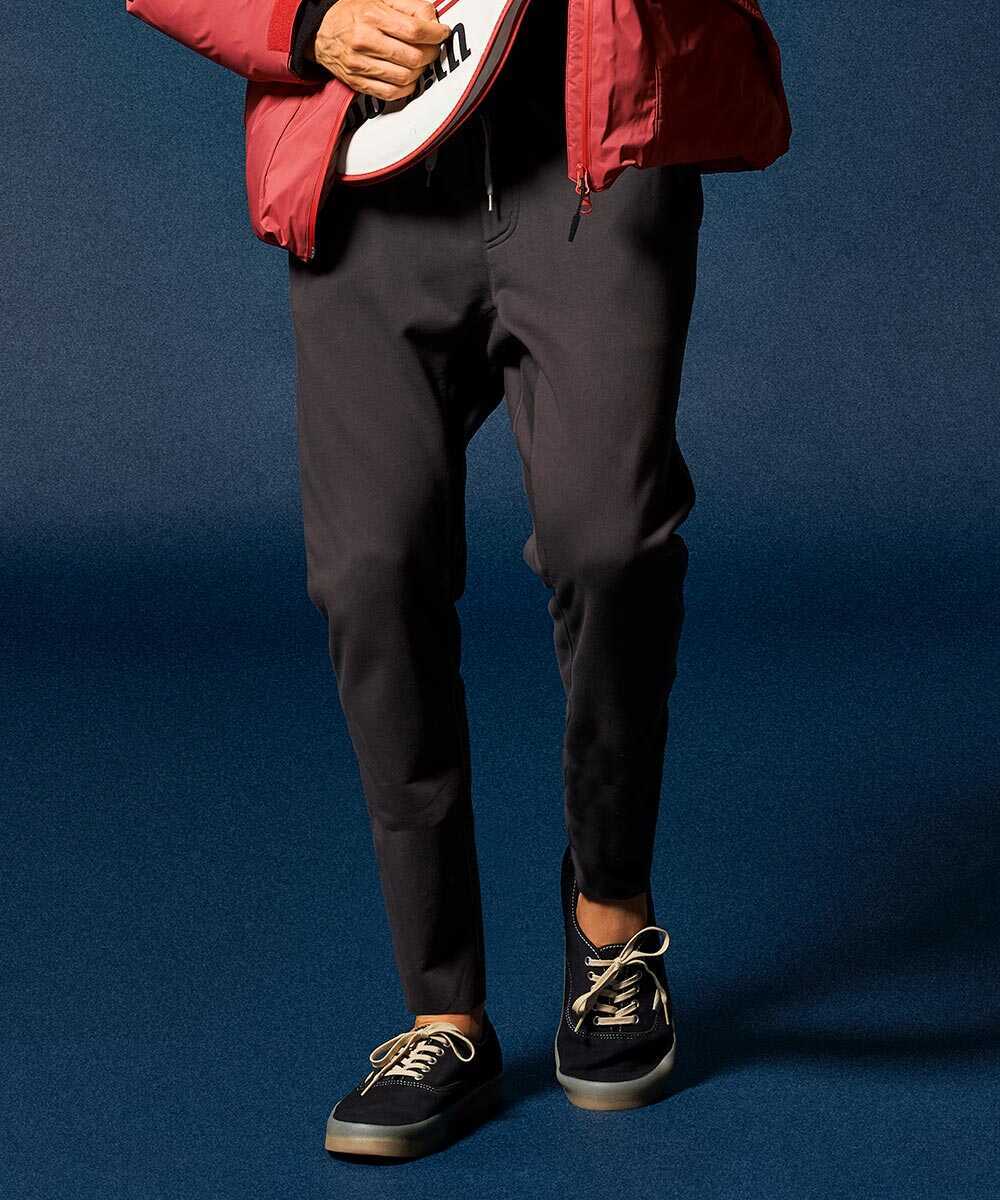 スウェットパンツを穿いているかのようなリラックス感と、それでいてスタイリッシュに見える細身シルエットが人気の〈ダブルピー ウエストポイント〉のイージーパンツ。これをベースに、サイドにカーゴポケットをあしらった1本がこちら。すっきりシャープな仕上がりはそのまま、さりげない男らしさを披露できる。ストレッチ性バツグンの生地感や、腿の内側はガゼットクロッチと呼ばれる切り替えを施し、生地を多く使うことで実現した楽ちん設計は健在。シルエットは研究し尽くしたやや細身の仕上がり。脚に沿うようなシルエットで脚長効果もバツグン。