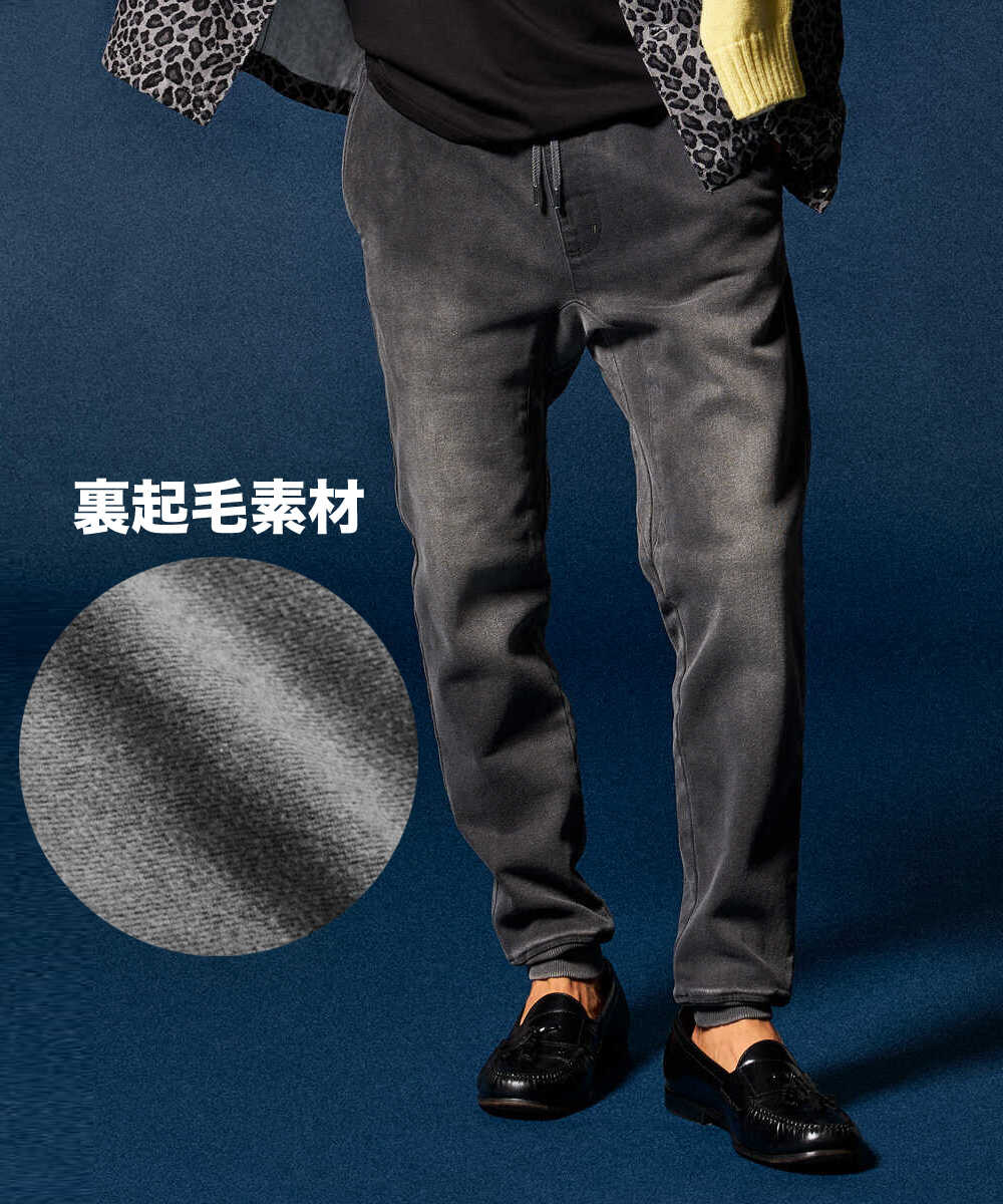 限定 裏起毛 リブ付きカラーデニム風 イージーパンツ