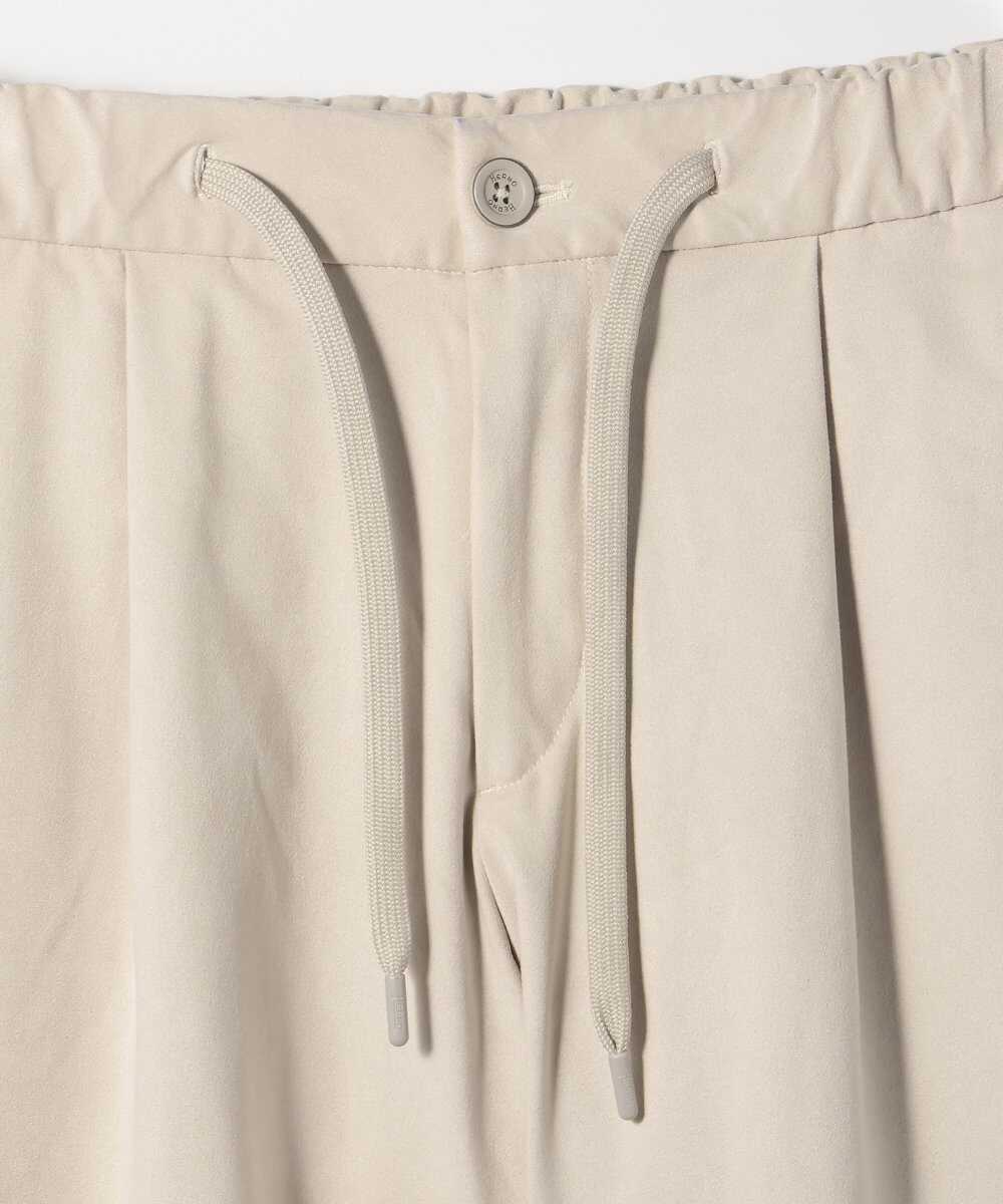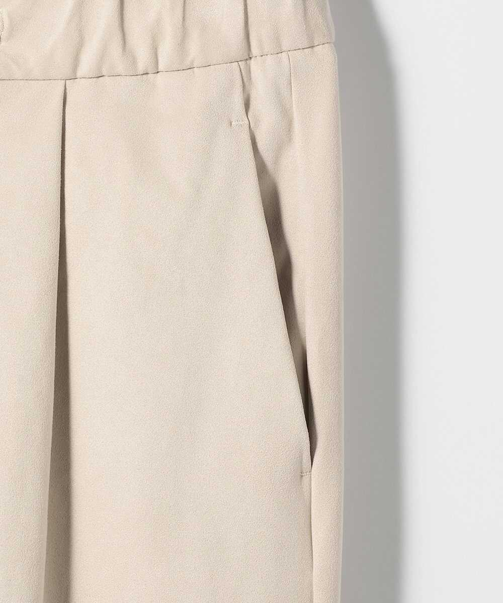 楽ちんだが品よく見えるように、ワンタックが入っていたり、ゴムウエストながら、フロントにはボタンが。落ち感ある生地は優雅なドレープを形成してれる!