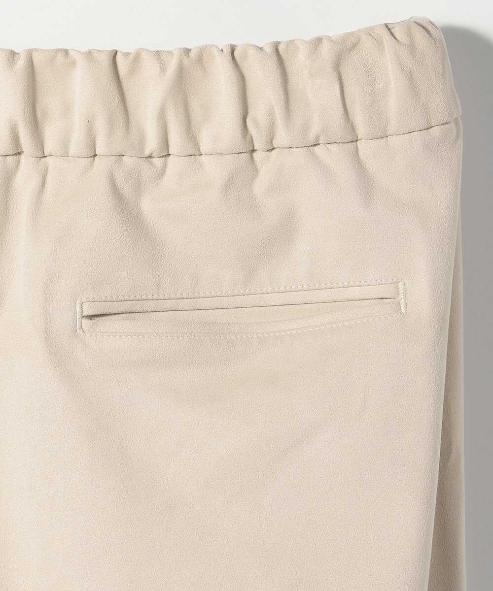 冬ならではのエコスウェードを採用した〈ヘルノ〉のイージーパンツ。やわらかでしっとりした生地は高級感もさることながら、防寒性にも優れている。シルエットはブランドが綿密に計算したパターンで、素材の持つ男らしさを残しながらもあくまで品よく仕上がる美テイパードに。浮いて見えない冬の白パンが完成だ。