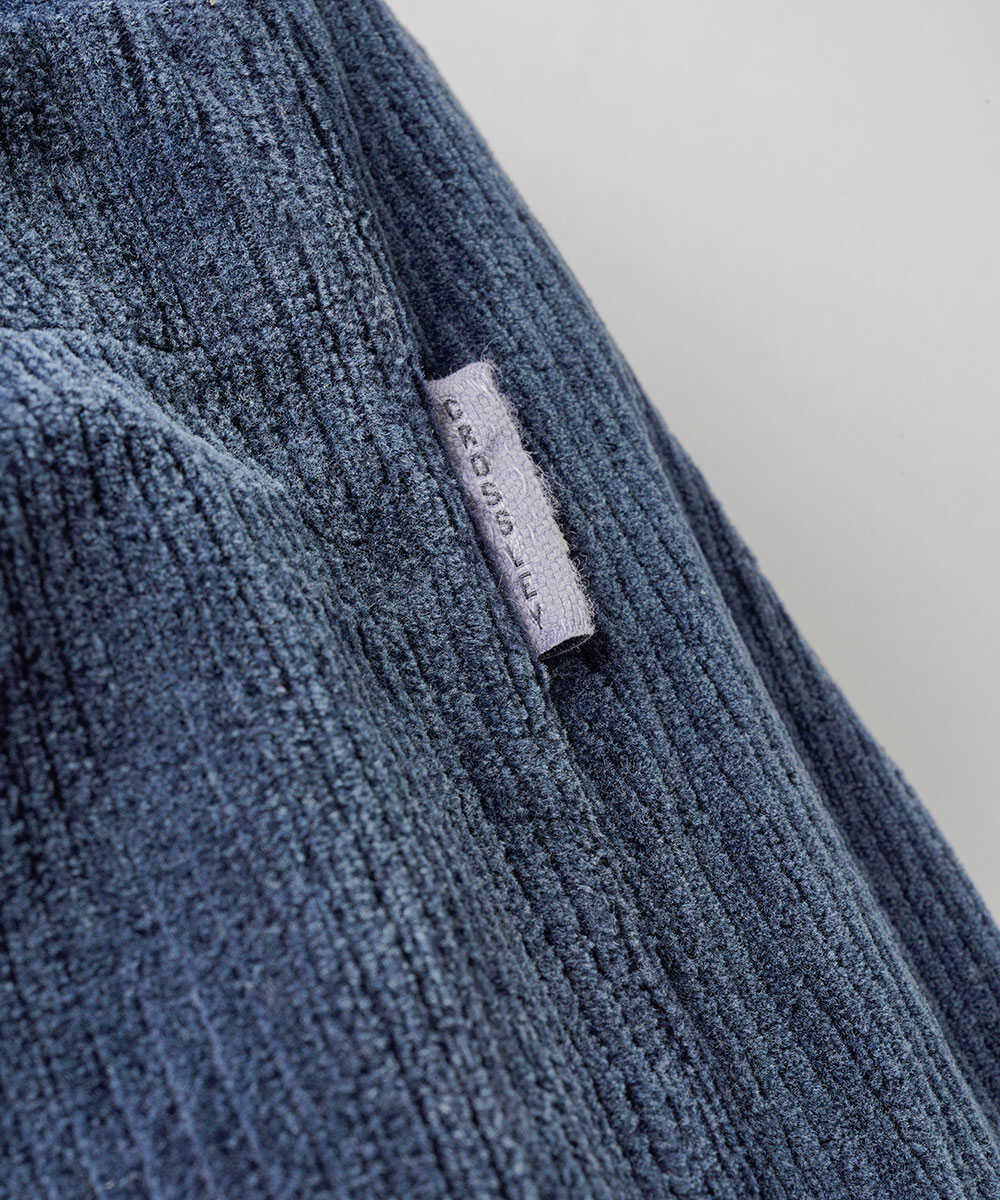 秋冬の素材の代表格といえばコーデュロイ。畝のおかげで立体感が出て、1本でサマになるので頼りになる素材だ。もちろん防寒性もばっちり。この〈クロスリー〉の1本は、シックなネイビーの細畝コーデュロイでややゆったりしたシルエットに仕上げた代物。大人の貫禄漂う仕上がりで、セットアップになるトラックジャケットも展開中。