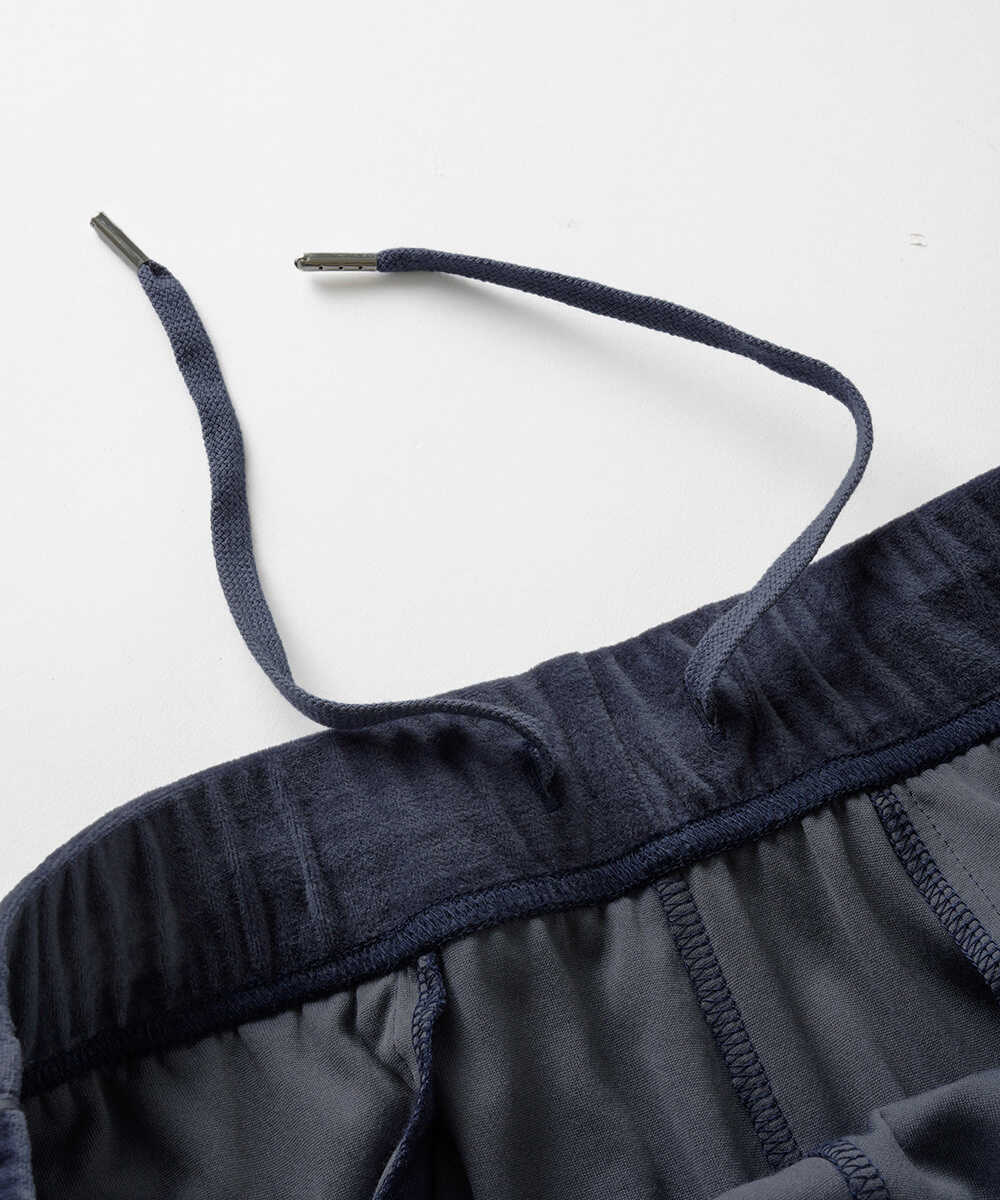 ドローコードはあえて内側に配することで、部屋着見えしないように配慮。街着としても家でのリラックスタイムの1着としても幅広いシーンで活躍してくれること的街なし!