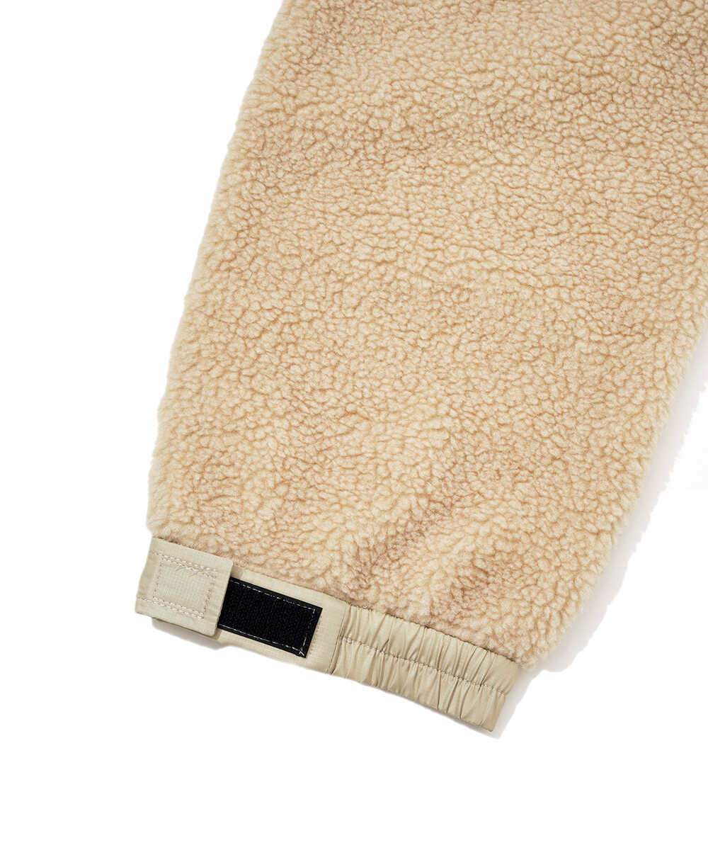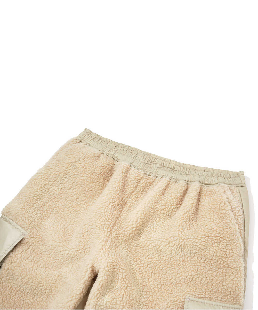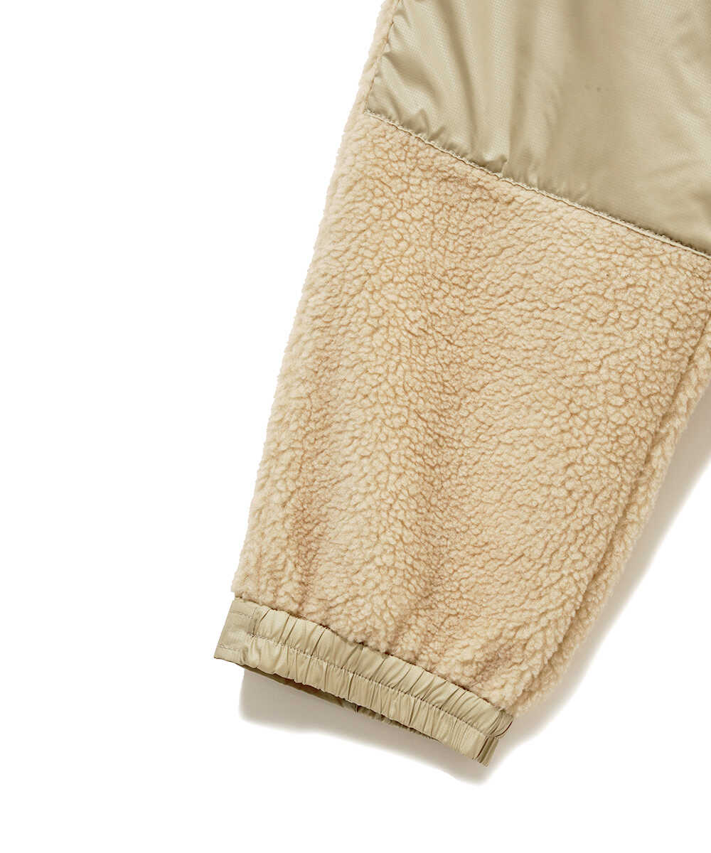 ナイロン素材で切り替えることで、ボアのほっこり感を絶妙に抑えている。肉厚なボアが肌を優しく包みこみ、暖かい穿き心地をキープ。