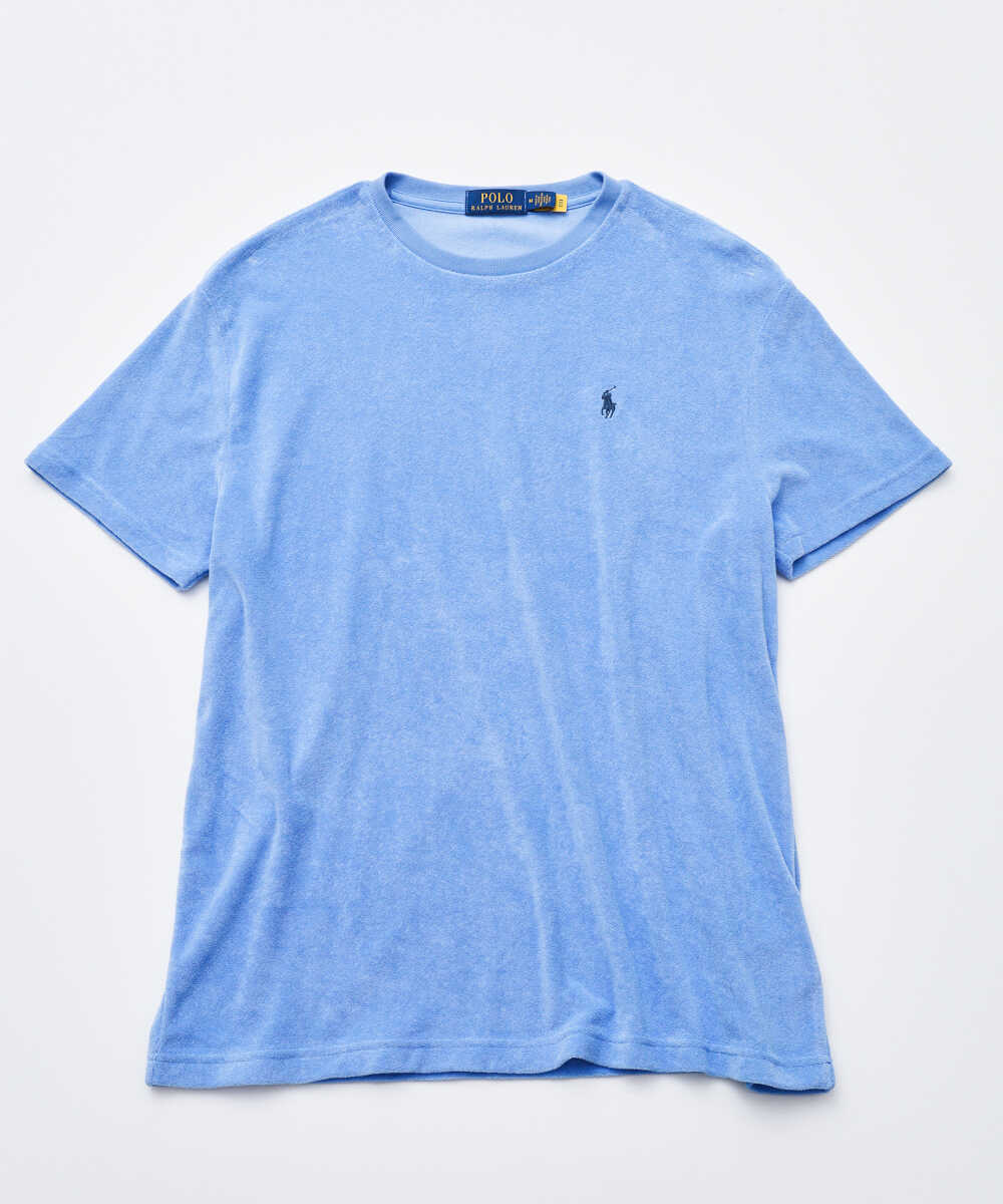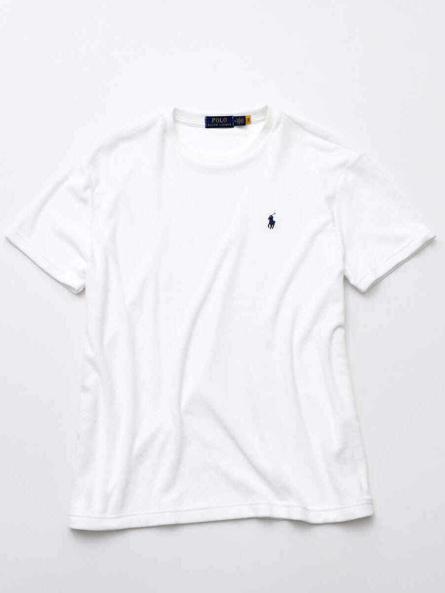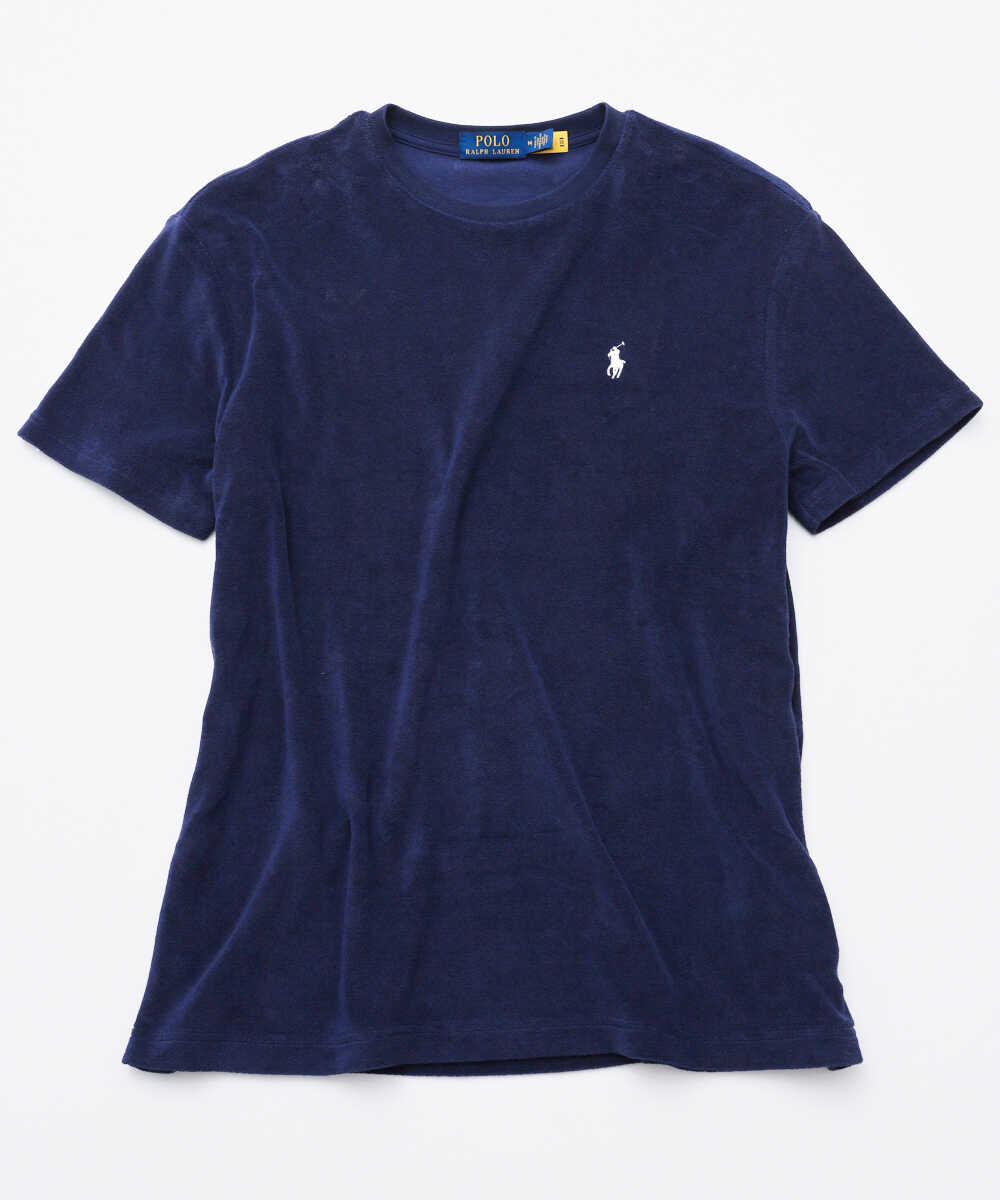 パイル地のTシャツはシーンを問わず使えるオールラウンダー。とりわけ海での使い勝手は抜群。海上がりの濡れたカラダにそのまま羽織ればタオル代わりになるし、柔らかなパイルは日灼けで火照った肌にも優しい。で、紹介するのが〈ポロ ラルフ ローレン〉の1枚。上質なマイクロパイル素材のボディに〝ポロ ポニー〞を配したTシャツは、シンプルかつラグジュアリー。海カジュアルの格がぐっと上がる。