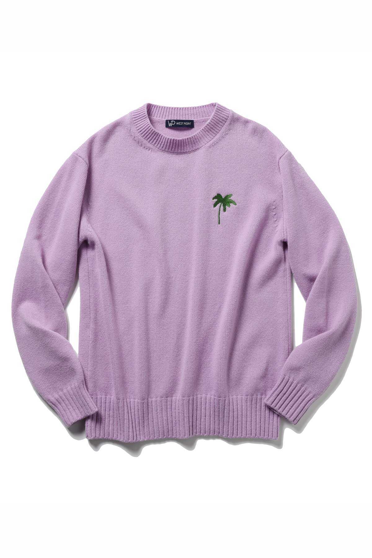 上質なカシミヤ製ニットは、大人なら1枚はもっておきたい秋冬の定番。で、今回ご紹介するのは、〈ダブルピー ウエストポイント〉のこちら。カシミヤならではのしなやかで繊細な風合いに加え、上品なパステルカラーも印象的だ。胸元にはヤシの木の刺繍が施されているから、海好きにも刺さるんじゃない!?
