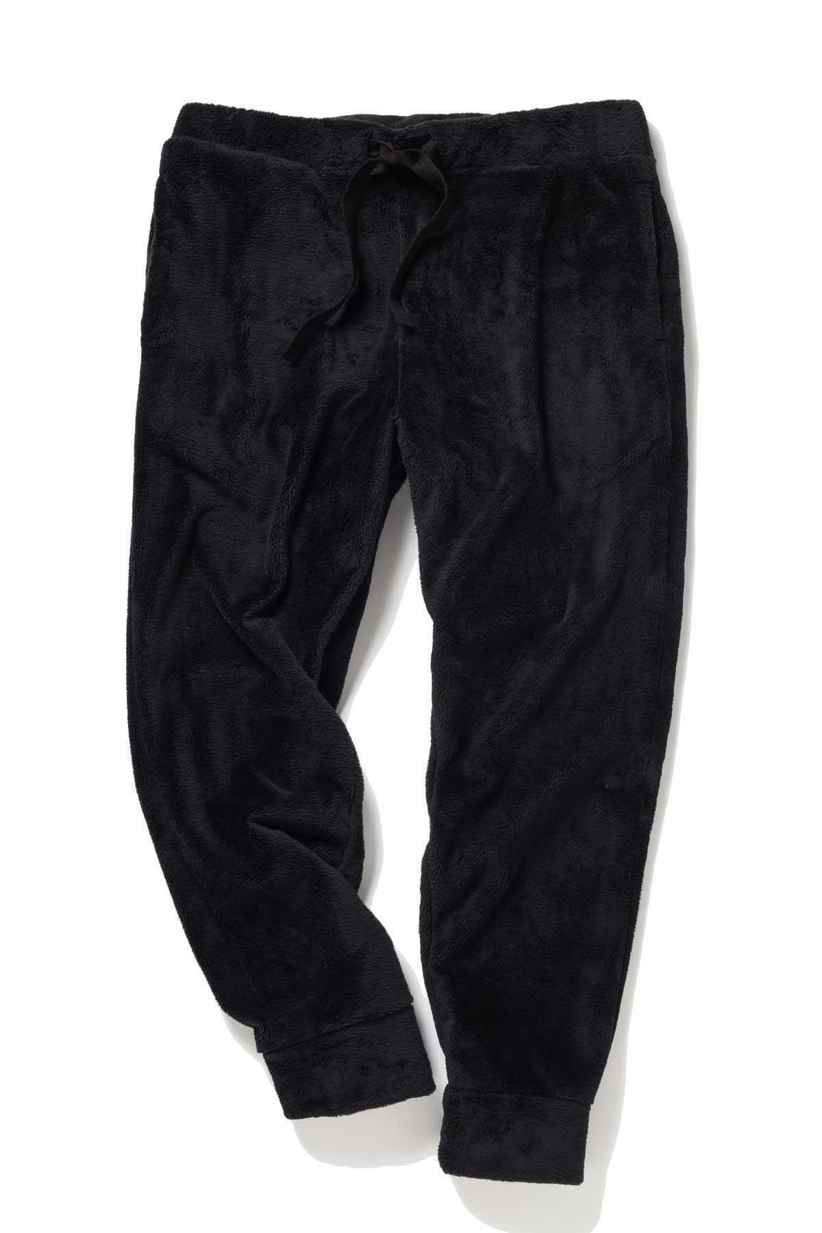 フェイクファーのようにボリューミーなフリースを両面に使用したパンツ。フワフワで柔らかな抜群の肌触りは、一度脚を通すと虜になること請け合いだ。シルエットは美脚ラインを描くテーパードなので、着膨れすることなくタウンユースしやすいのも高ポイント。自宅で手洗いできる扱いやすさも見逃せない。