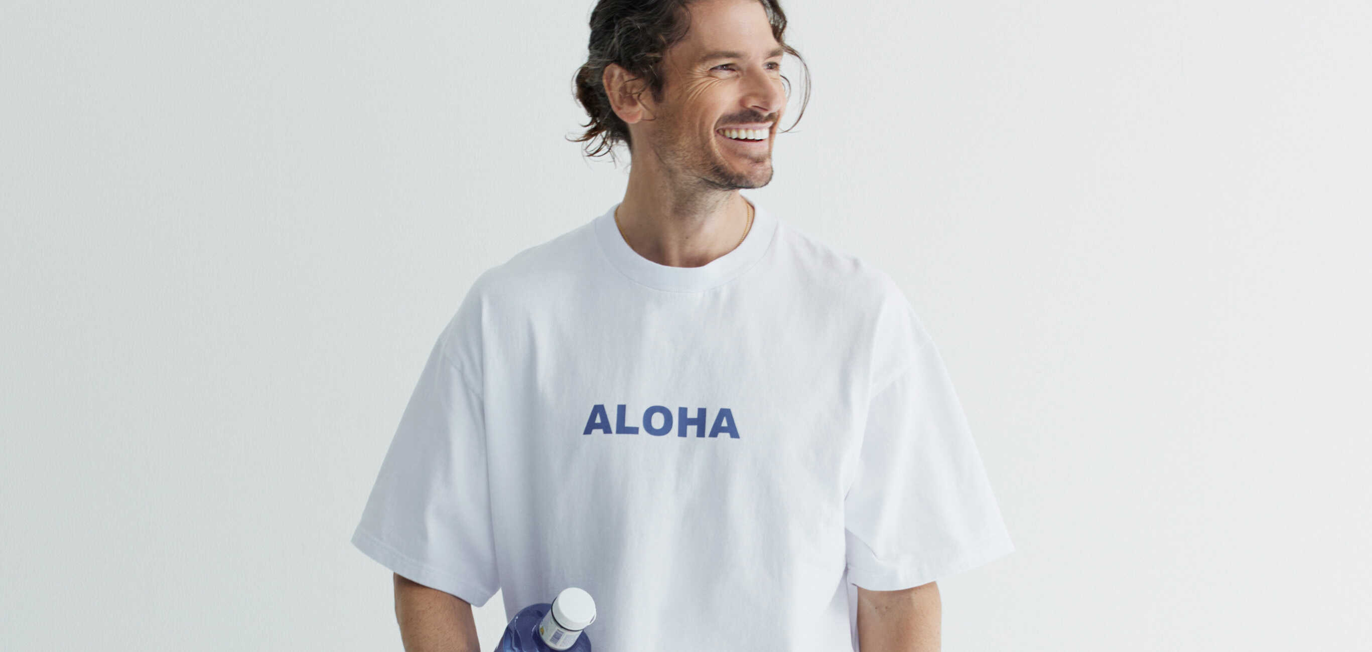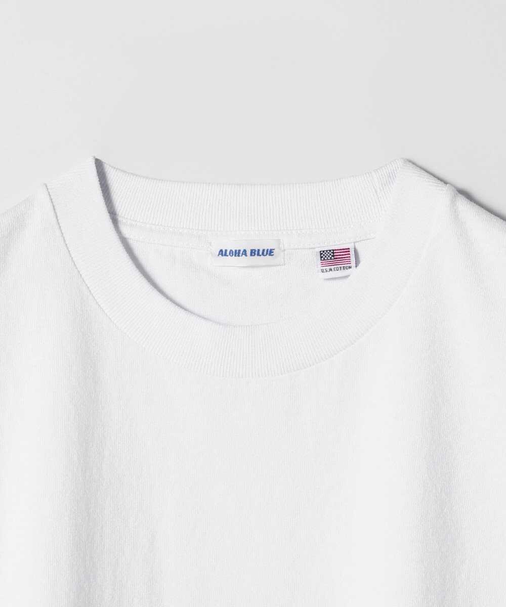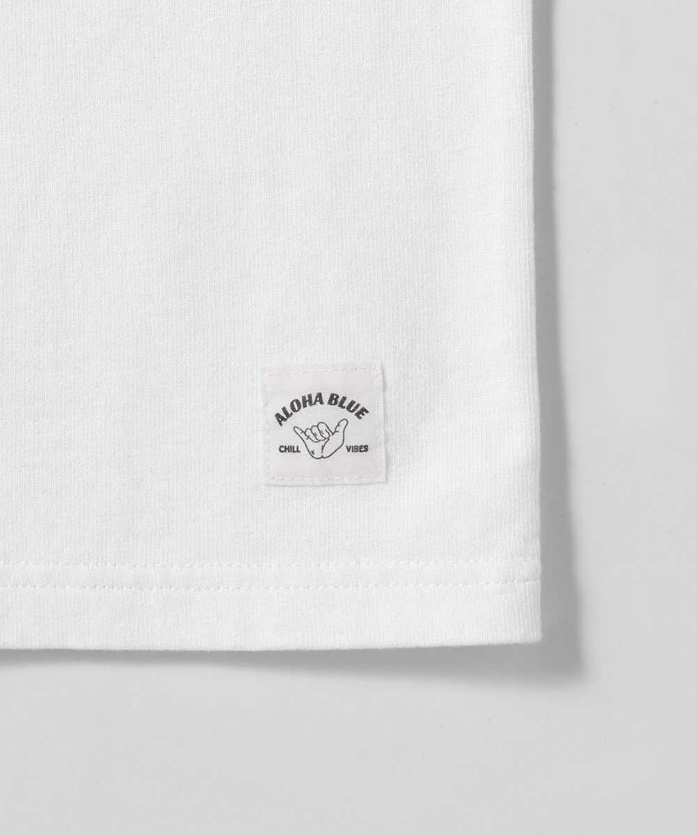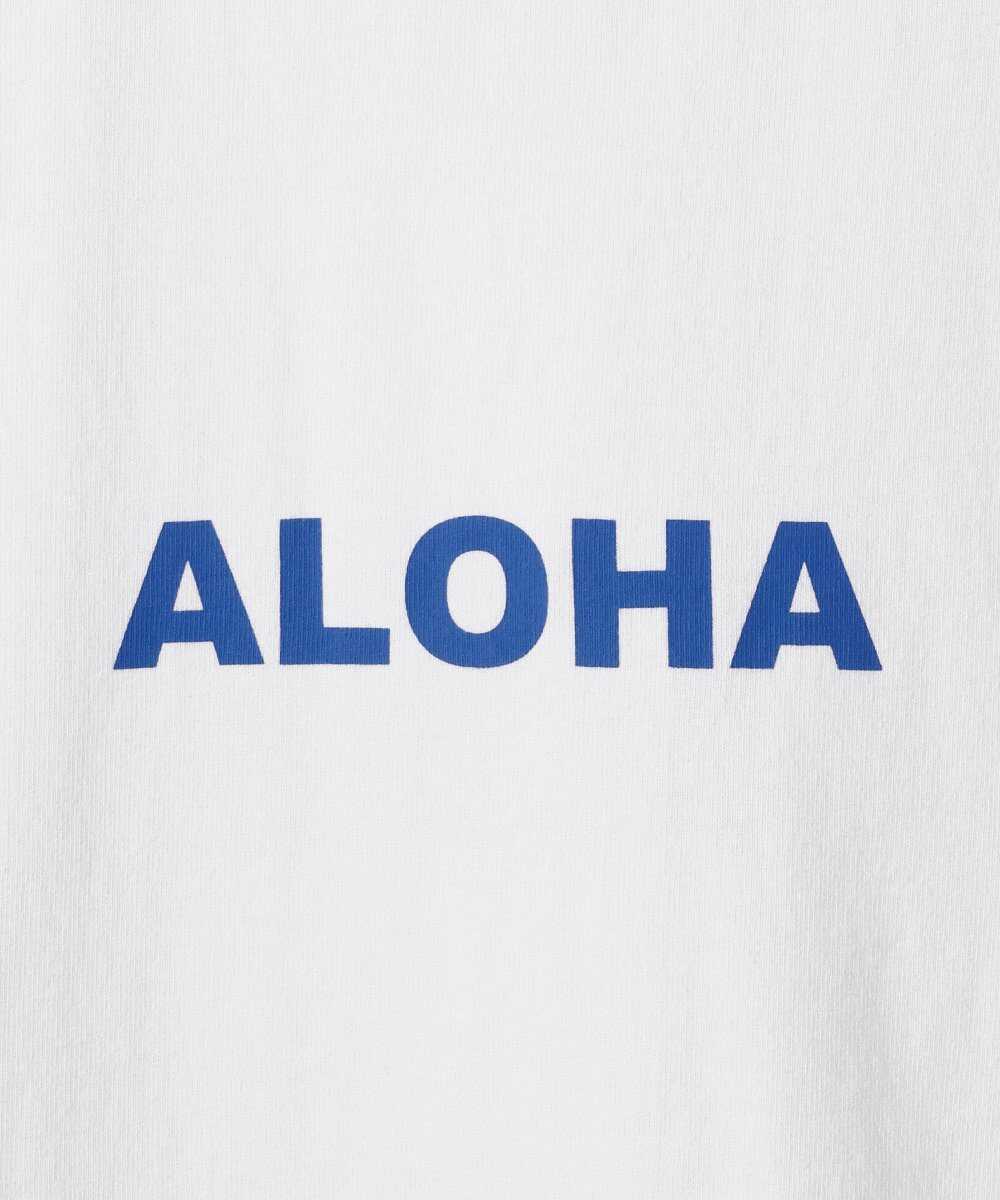 爽やかさ&清潔感間違いなしなホワイト&ブルーのカラーリングで制作したロゴT。フロントには"ALOHA"、バックには"BLUE"とブランド名を分けてプリントすることでさりげない遊び心を表現。