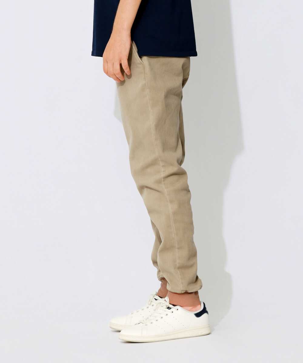 限定 リブ付きカラーデニム風イージーパンツ