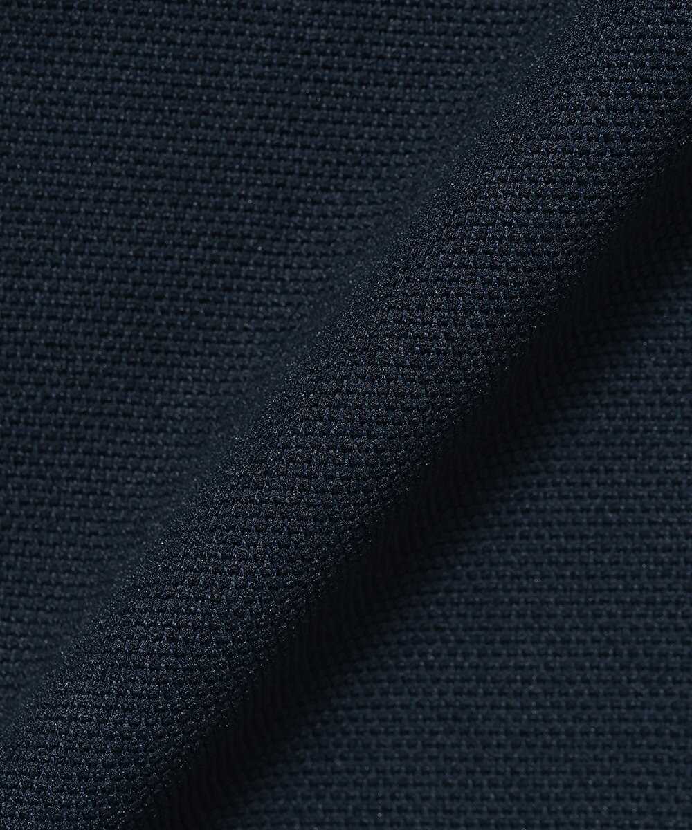 再生ポリエステルを編み立てた、鹿の子素材を使用。残暑に嬉しい、吸水速乾性やUVカット機能を持ち、ドライタッチで肌離れがよい。