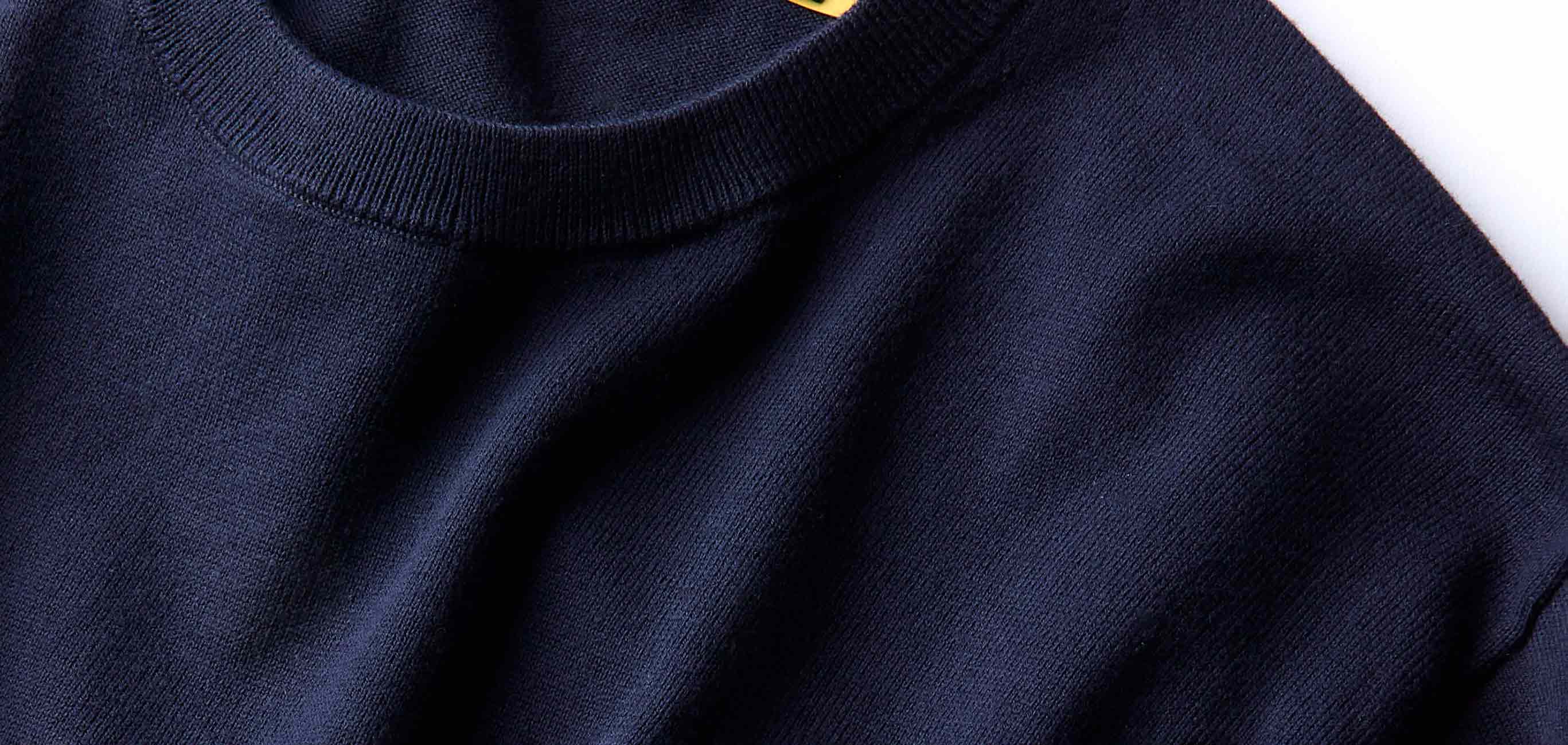 落ち着いた濃紺にアクセントで目立つ白いポニーロゴ刺繍。生地はハイゲージで伸縮性があり動きやすい。