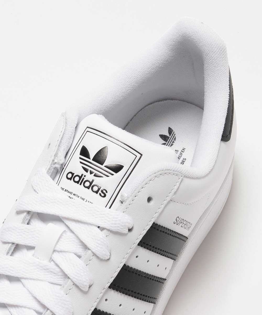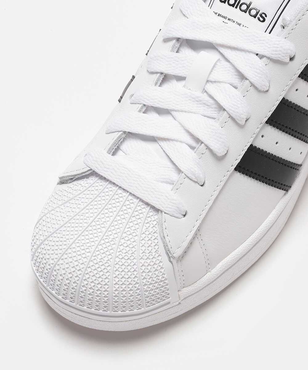 〈アディダス〉の定番モデル"スーパースター"をアップデイトしたのがこのスーパースター"Ⅱ"。お馴染みの名作を少しボリュームのあるポテっとしたシルエットにし、昨今のワイドパンツやボリュームスニーカーの流れを汲む仕様に。シュータンとヒールにはパッドが入ることで、クッション性のある快適な履き心地を実現。