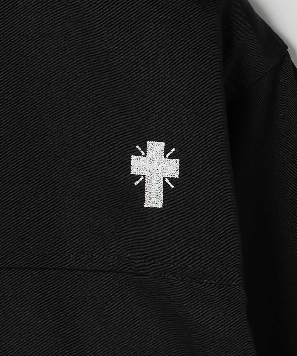 '80年代のムード漂う、ヴィンテージ風に仕上げたトラックジャケット。軽やかな羽織りものとして重宝する生地感で、胸のブランドロゴのパッチに加えて、バックヨークにさりげなく刺繍で施されたアイコンのクロスがワンポイント輝く。