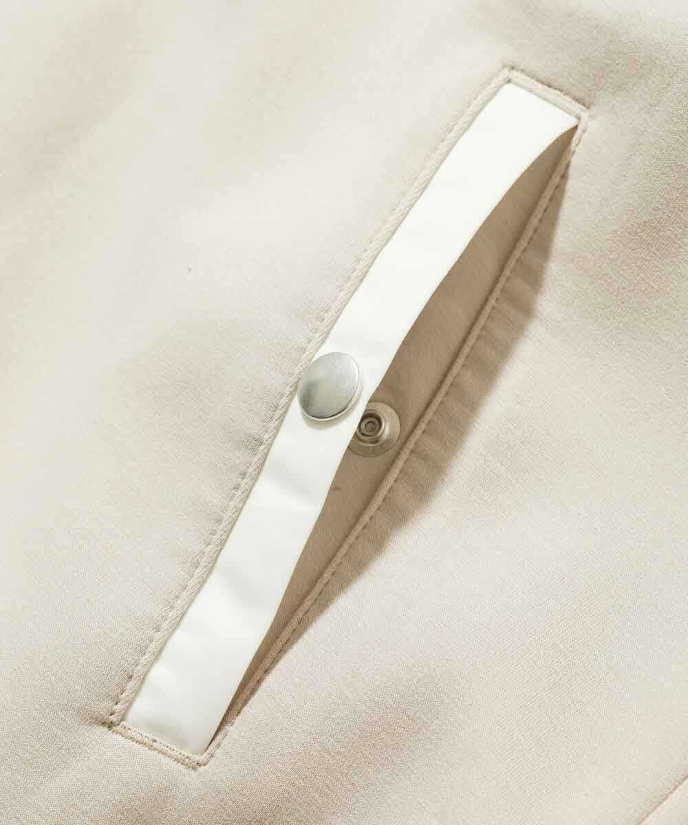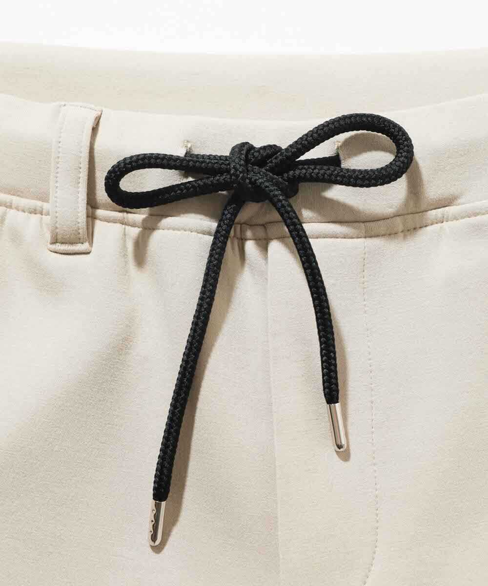 ストレッチ性があり、見た目以上に軽い素材のおかげで、細身でもストレスフリーな穿き心地。ドローコードやジップポケットのブラックで引き締めてあり、都会的な見た目を構築してくれる。