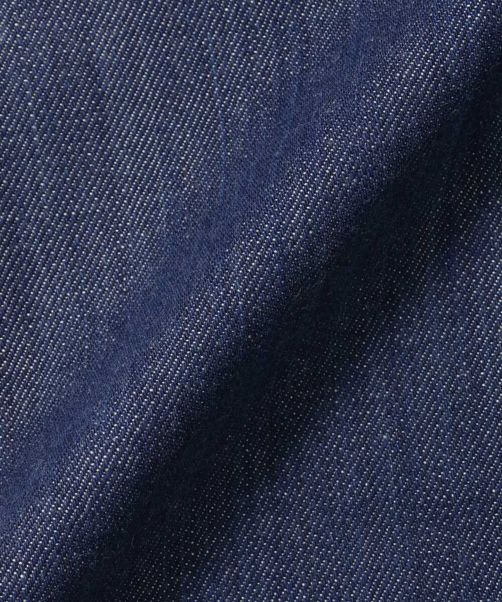 このきめ細やかさは、繊維の宝石とも評される素材に、徳島の伝統的な阿波正藍染めを施しているから。青すぎず、ほんのりとグレーがかかった色合いと、綛染め(手染め)によってできる自然なムラ感が特徴で、同じ形のデニムジャケットとは一線を画すことができる。