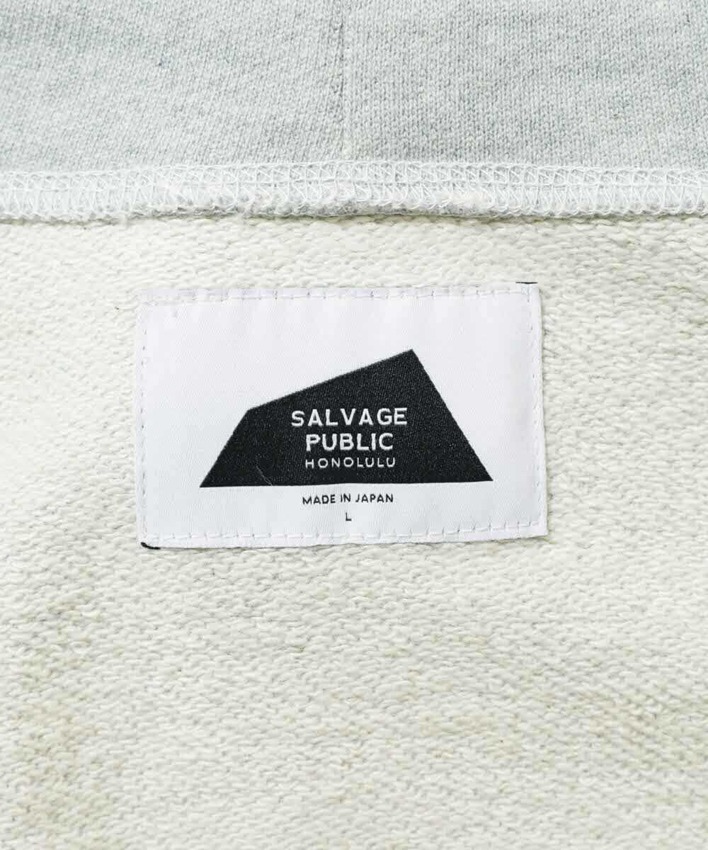 「さてさて、秋も引き続き〈サルベージ パブリック〉との別注アイテムが目白押しなので、ご紹介させてください。『Safari Lounge』ではお馴染みのハワイ生まれの爽やか、ハツラツ、それでいて大人が着やすい上質感がウリのブランドなのですが、今回は別注でジップパーカを製作してもらいました。実は元々はプルオーバーでしか展開がなかったものを、この季節に脱ぎ着しやすいようにフロントにはジップを。それに合わせて胸のロゴ刺繍やバックプリントなどを選び、オリジナルの組み合わせにしています。そもそもの完成度が高いパーカなんですが、その雰囲気を壊さずにより大人が街で、海で着やすいようになったかなと!」