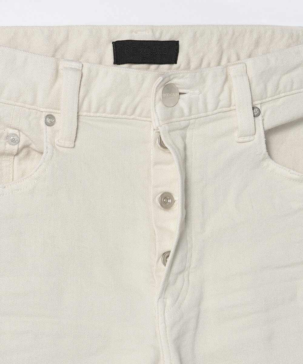 毎シーズン圧倒的な人気を誇る〈レッドカード トーキョー〉の定番モデル"リズム"。そんな1本をアップデイトしたのがこちら。今回のリニューアルでは、股上を約2cm深く、ウエストを約1.5cm細く調整し、より洗練されたフィット感と美しいシルエットを実現。白すぎない白の色味で秋冬のスタイリングに合わせても浮いて見えないのがポイントだ。