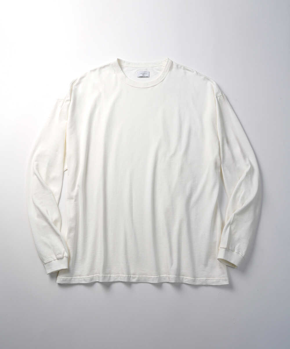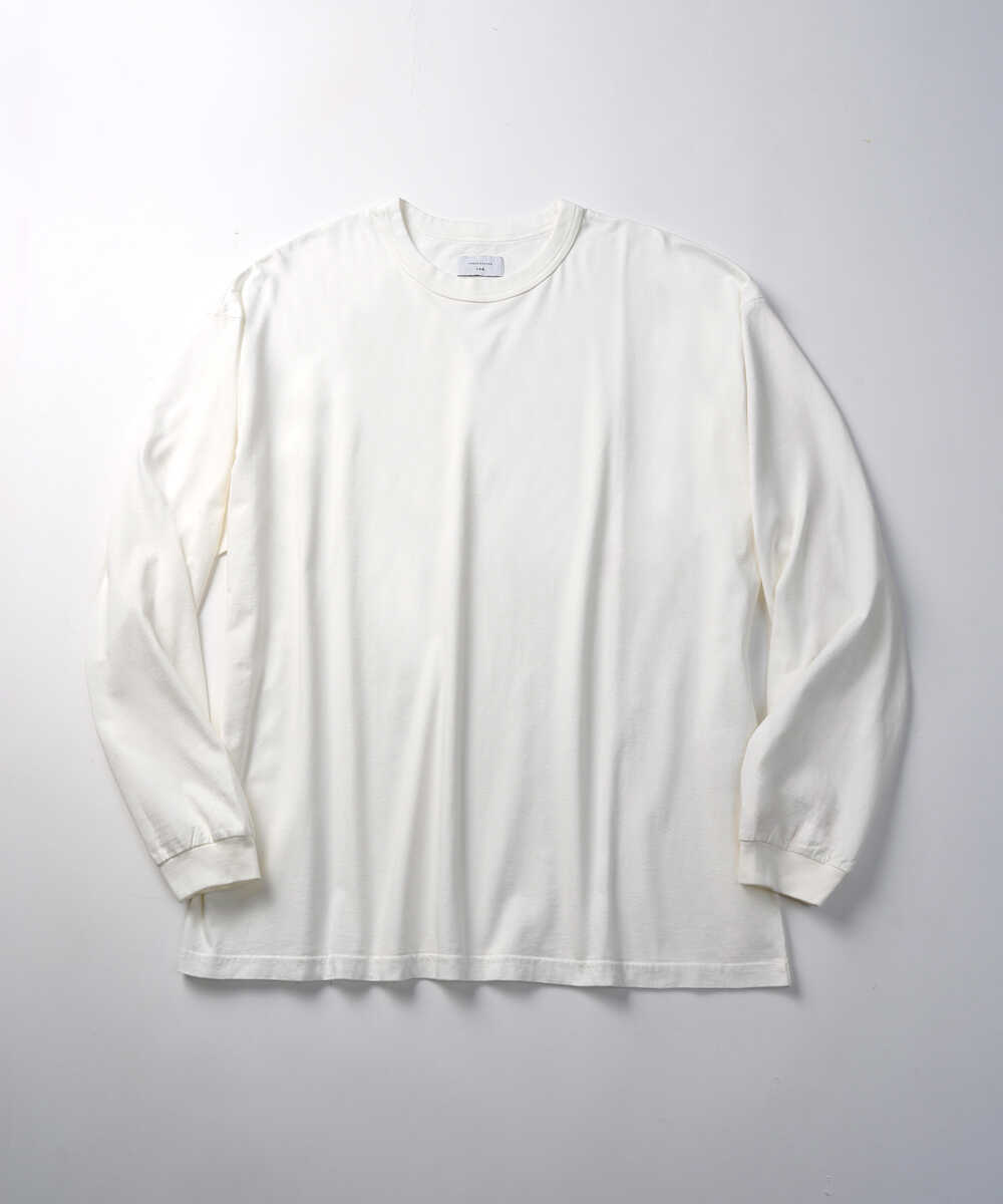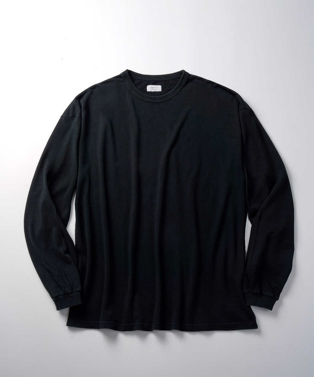肌に触れる裏面がなんとパイル地になっているのがこのロンT。パッと見は普通の上質ロンTだけど、裏地が違うのがこの1枚の持ち味。気持ちよさはもちろんのこと、シルエットも実は細かく計算されている1枚で、デザイナーいわく"どのような体型の方でも1枚で綺麗に着こなせるTシャツ"とのこと!