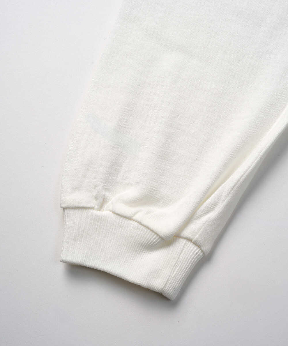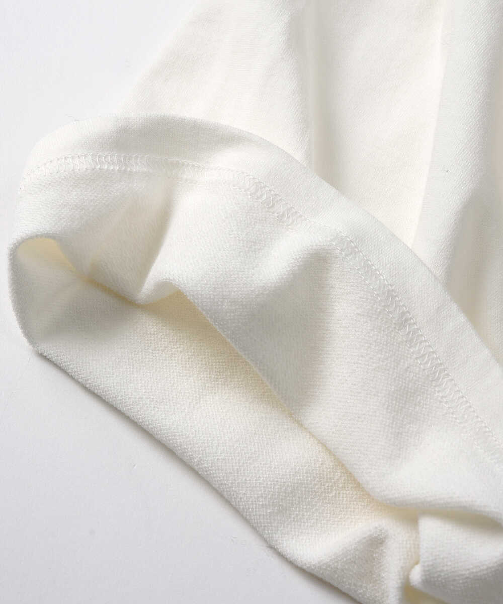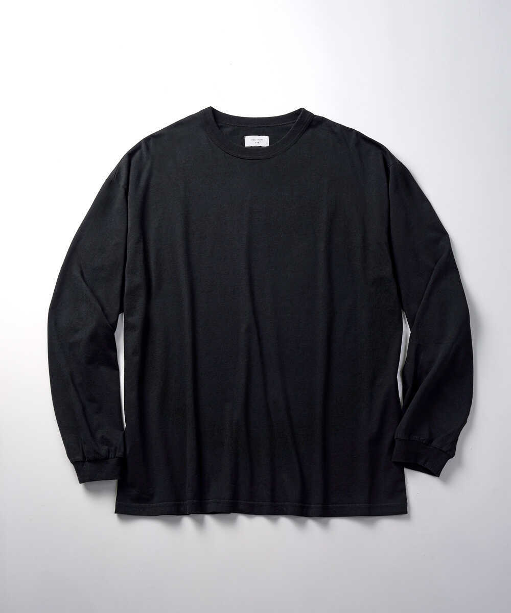 肌に触れる裏面がなんとパイル地になっているのがこのロンT。パッと見は普通の上質ロンTだけど、裏地が違うのがこの1枚の持ち味。気持ちよさはもちろんのこと、シルエットも実は細かく計算されている1枚で、デザイナーいわく"どのような体型の方でも1枚で綺麗に着こなせるTシャツ"とのこと!