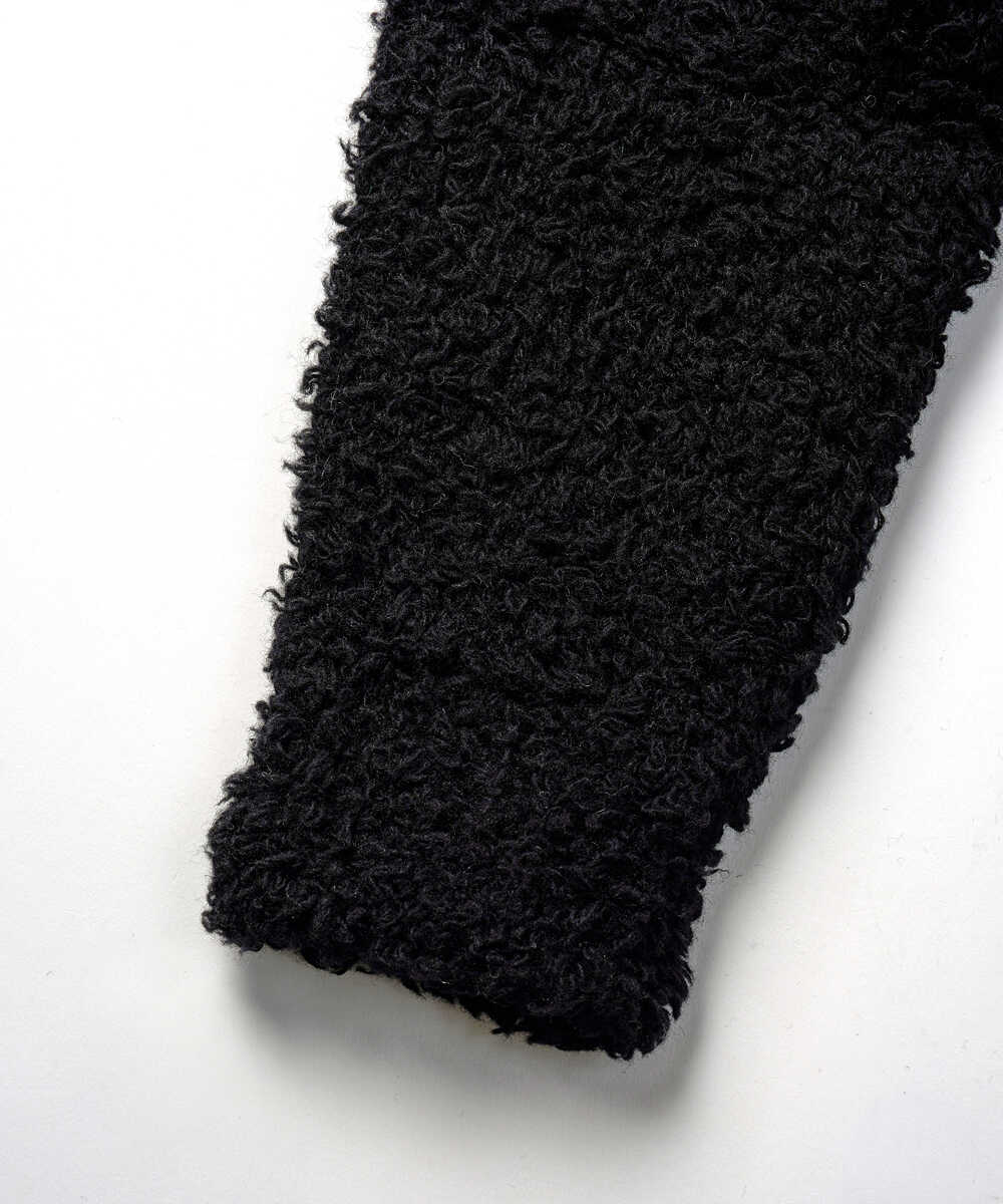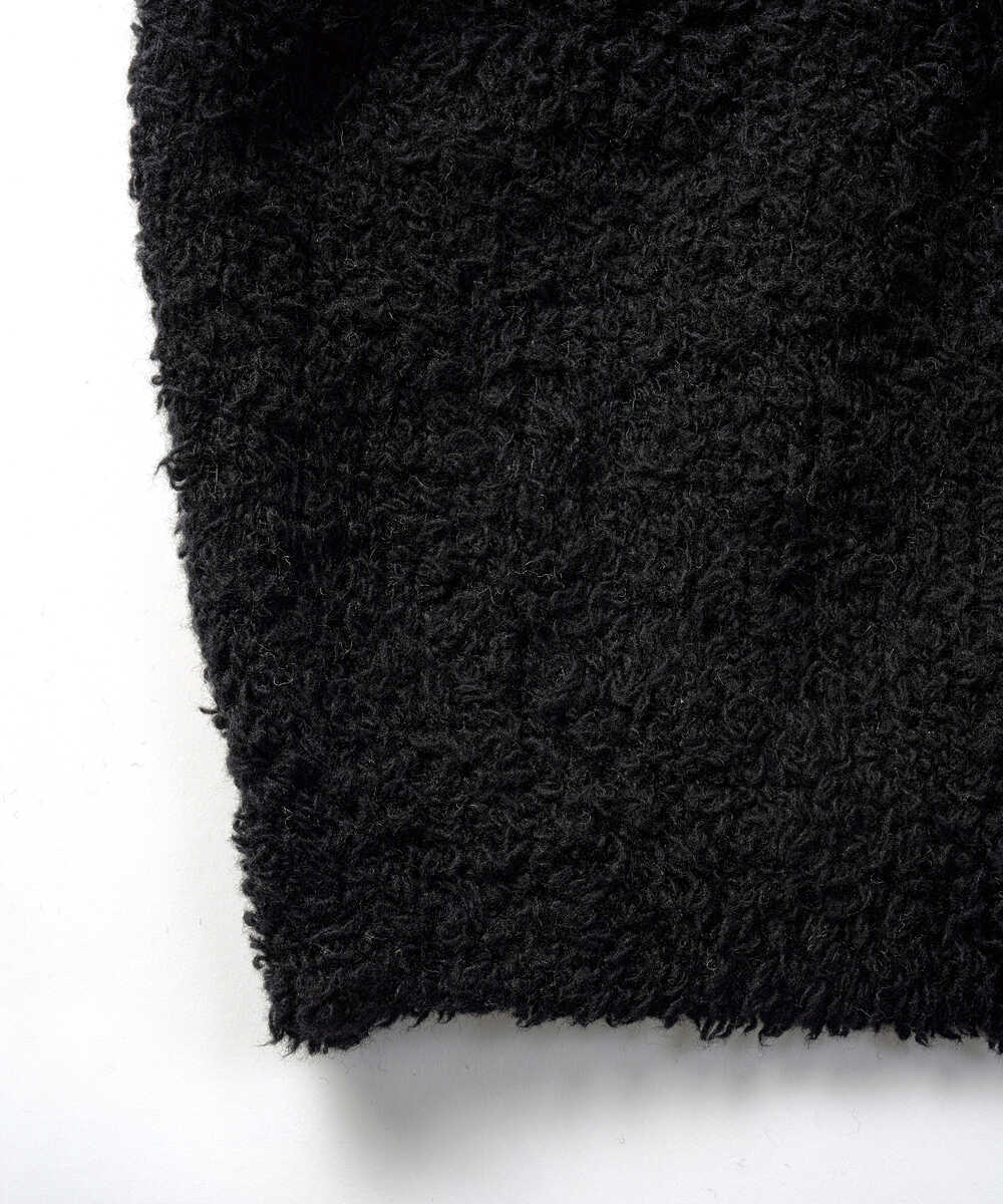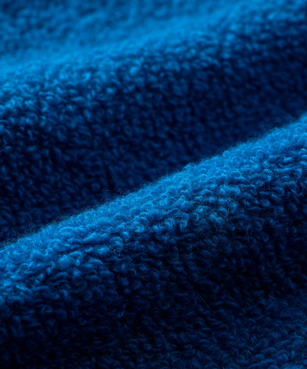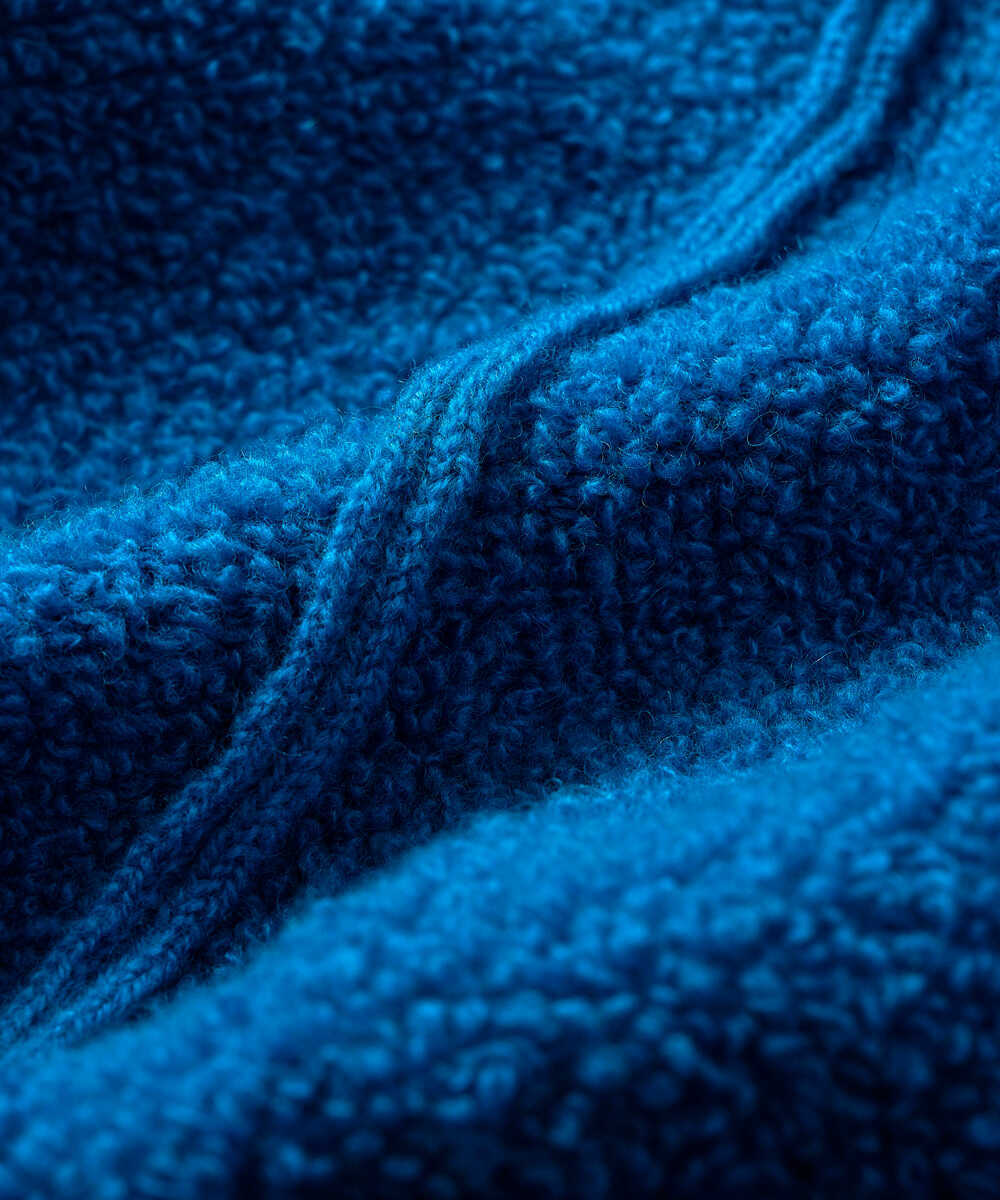 見た目はニット、でも裏面を見るとパイル生地という、一体どうやって作ったの!? と聞きたくなるような1着がこちら。ニットでは非常に難しい裏面パイルの2層構造を改造した編み機で仕立てるというこだわりを詰め込んだ代物は、他のニットとは一線を画す着心地を味わえる。