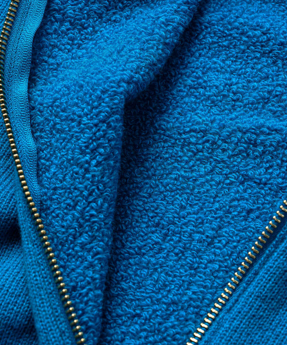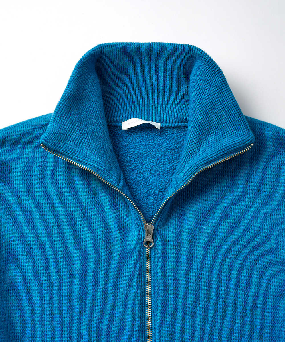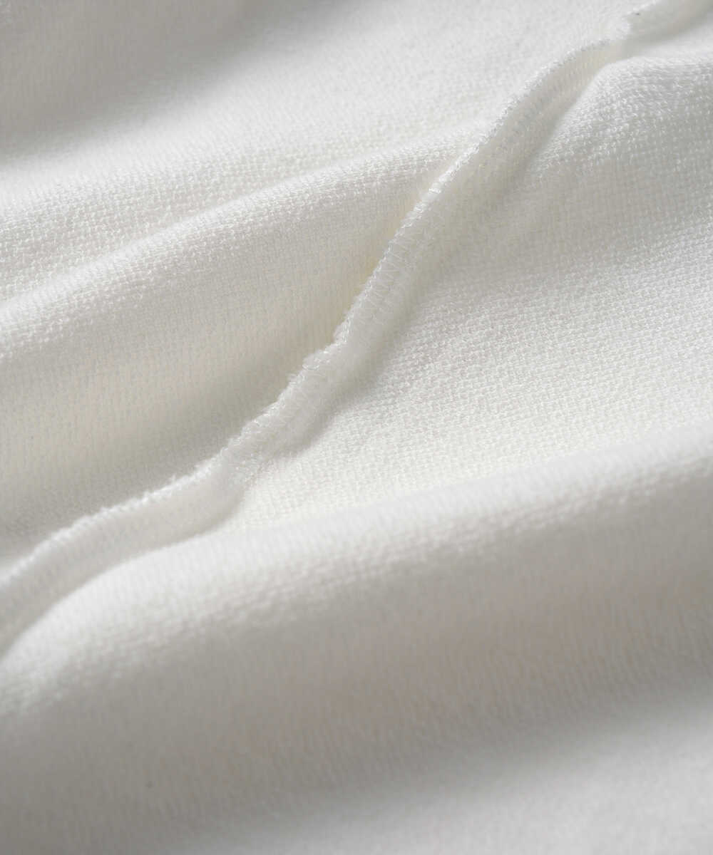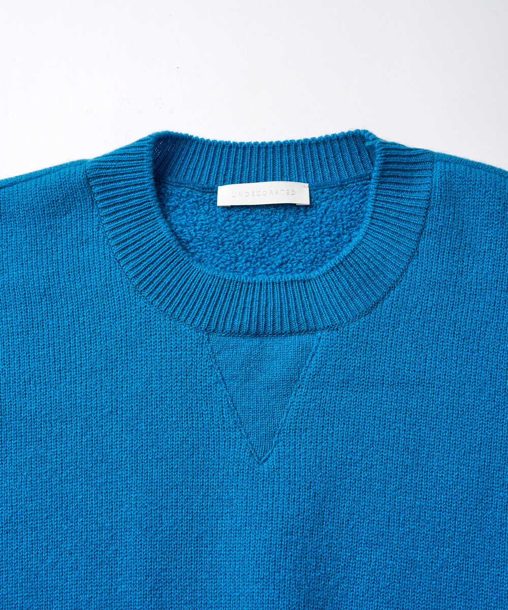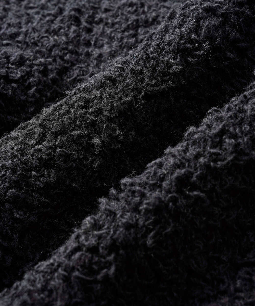 見た目はニット、でも裏面を見るとパイル生地という、一体どうやって作ったの!? と聞きたくなるような1着がこちら。ニットでは非常に難しい裏面パイルの2層構造を改造した編み機で仕立てるというこだわりを詰め込んだ代物は、他のニットとは一線を画す着心地を味わえる。