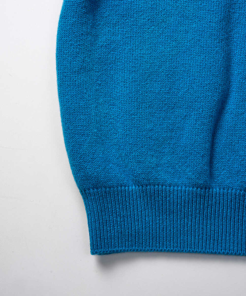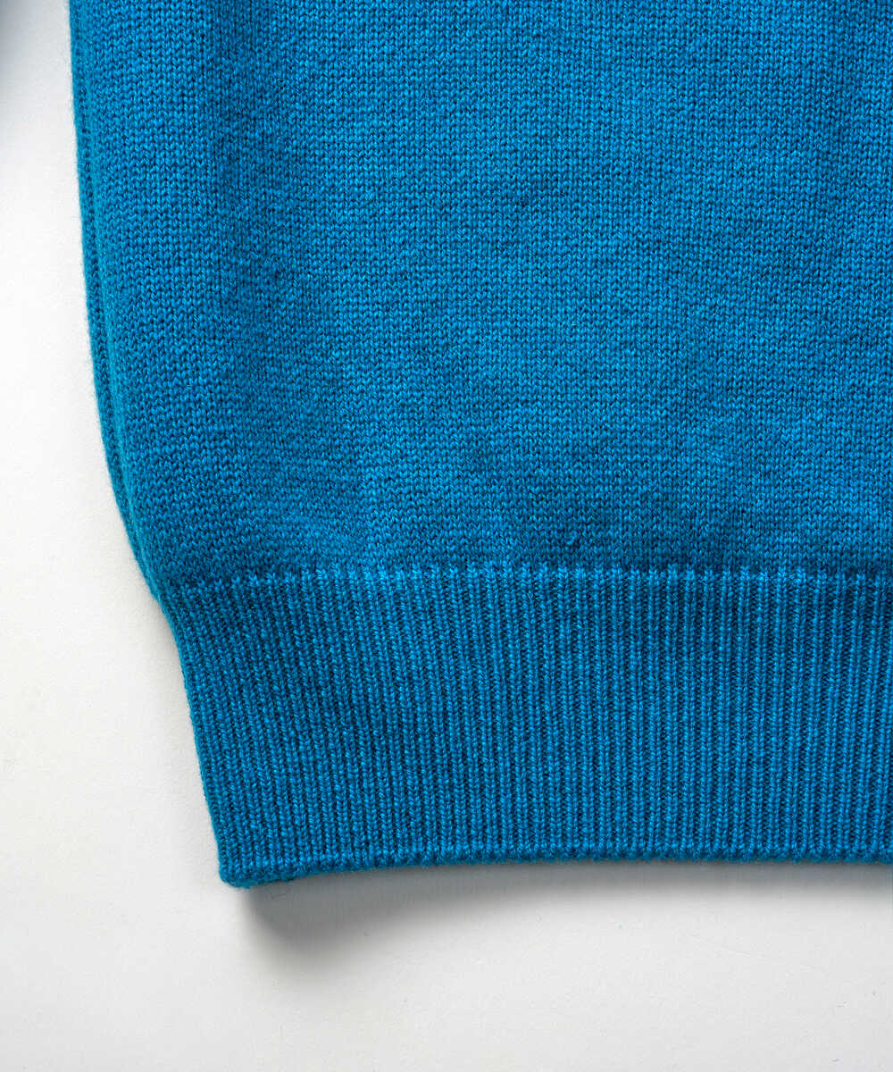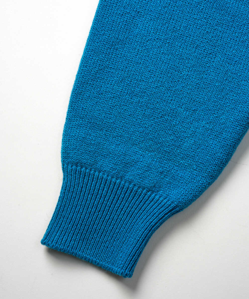 先ほどのジップニットと同じ、裏面パイルの生地をクルーネックニットに仕立てたのがこちら。普通のようで普通じゃない仕上がりは、これ見よがしにならない大人の余裕に繋がること間違いなし。ふんわりとした独特の着心地を是非味わってほしい。