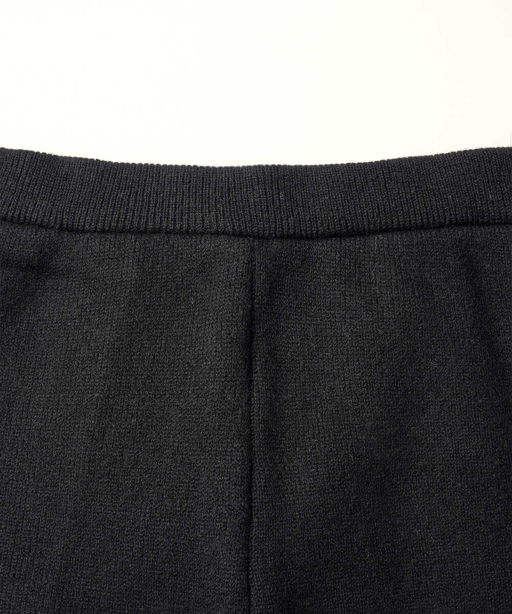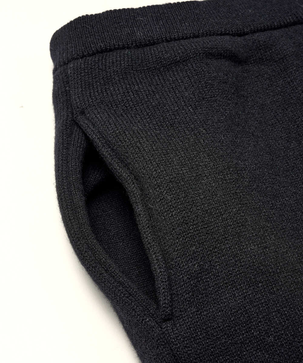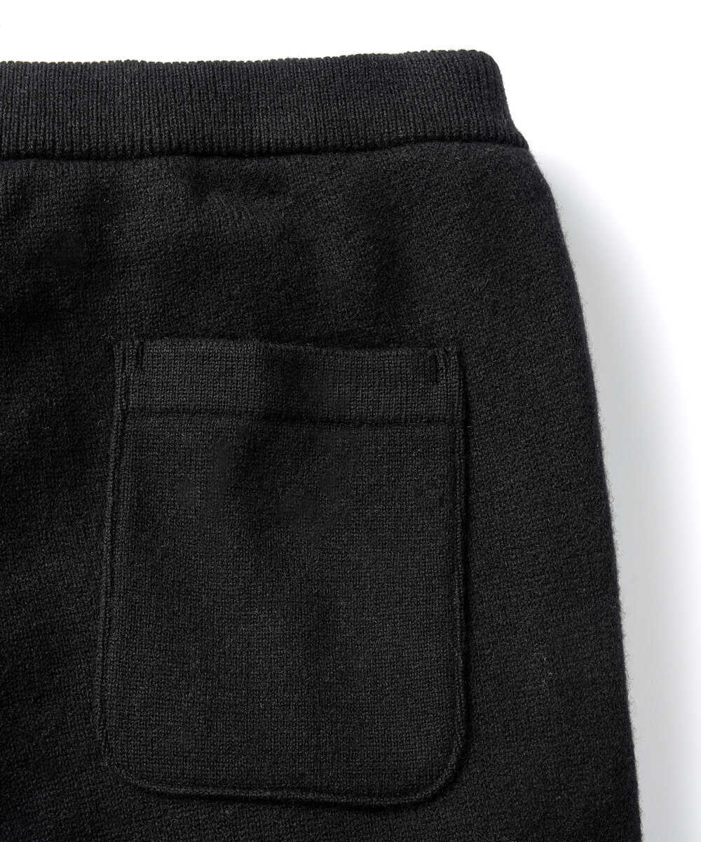 先ほどの生地を大胆にボトムで仕立てたニットパンツがこちら。スウェットパンツのような抜け感に加えて、上質さを醸し出すことができる大人のための1本だ。カシミヤの様な上質なふくらみ感や軽量感のある仕上がりは、チルアウトに最適では?