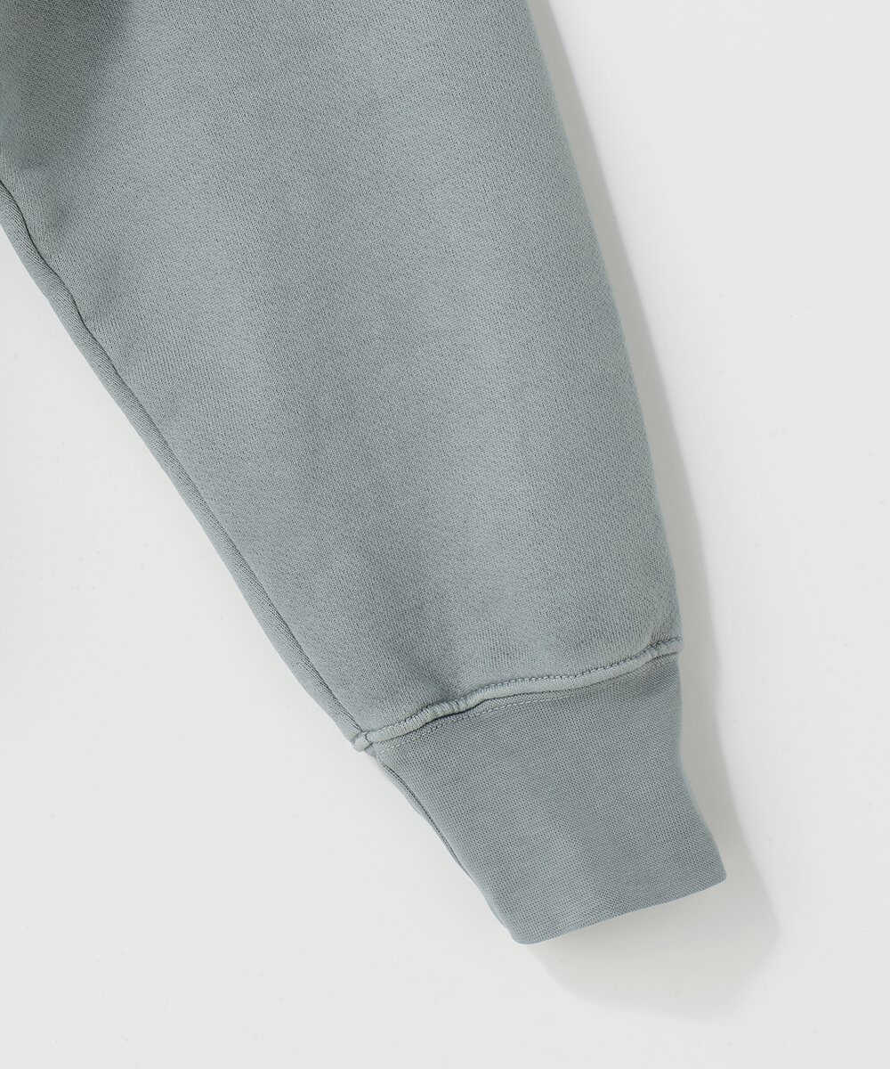 こちらは共地のセットアップになるスウェットパンツ。デニム感覚で穿いてほしい1本だ。太すぎず細すぎない定番ストレートのフィットで、どんな服にも合わせやすい仕上がり。安っぽさはないタフな生地の厚み。
