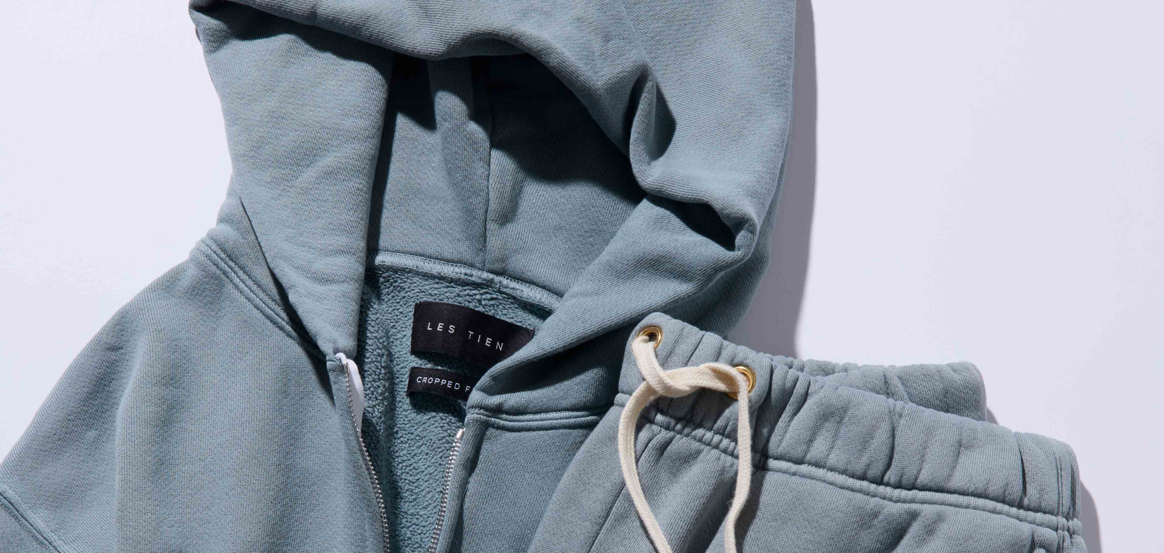ウォッシュドデニムのような淡いブルーで仕上げたジップパーカ。一貫してLAの工場で生産されている〈レス ティエン〉は、現地の水だからこそ実現する絶妙な褪せ色が持ち味。海外セレブやNBA選手も愛するブランドだ。