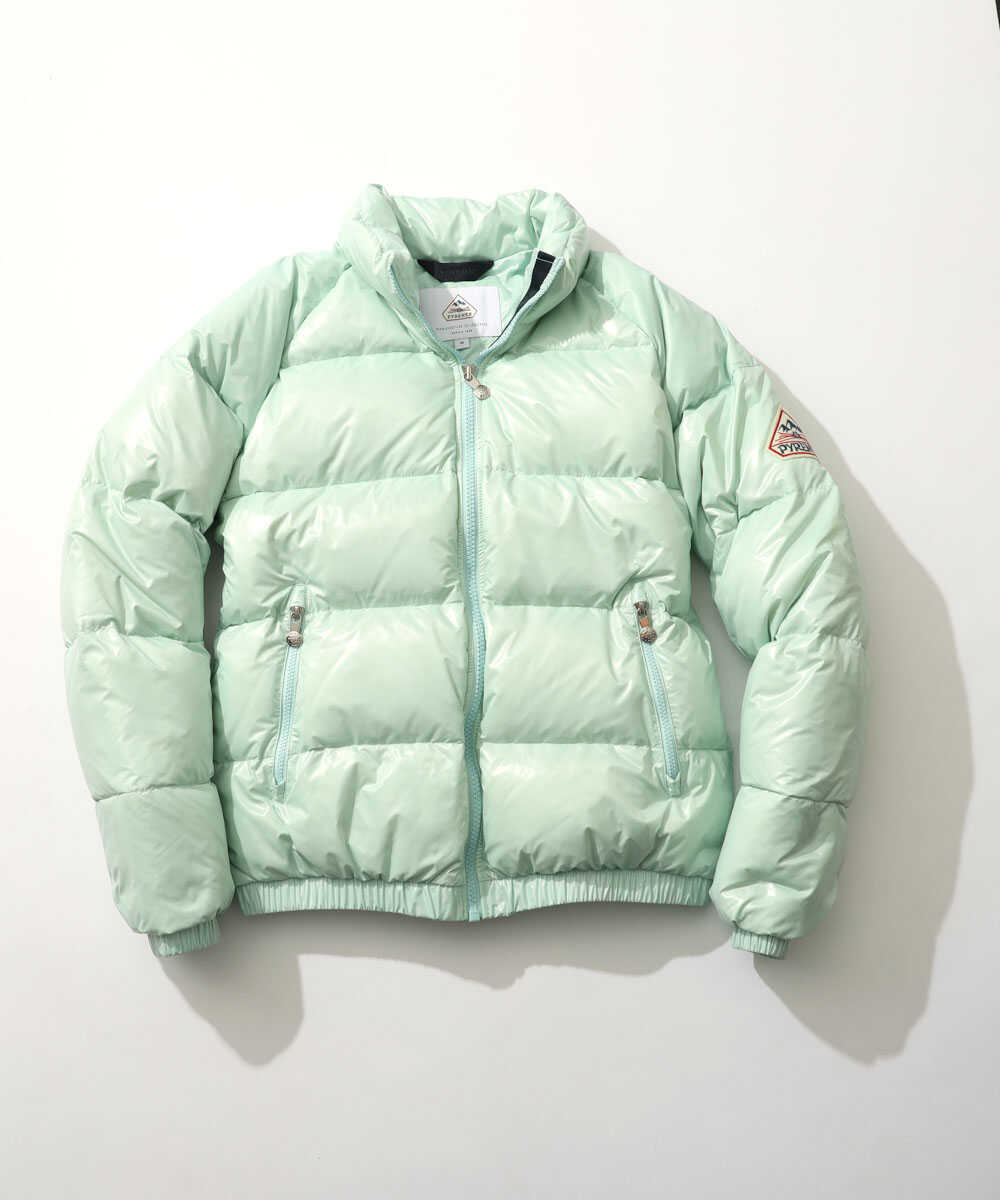 サッと羽織りやすいスタンドネックの仕様で、左袖のヴィンテージタイプのロゴワッペン、インサイドポケットの配色タグなど細かいところまでこだわり抜いている。フランスでは〈ピレネックス〉の黄金期を象徴するスタイルとして、現在でも人気を博すベストセラーモデルだ。モデルが着用したミントグリーン以外にも、雪のように繊細なホワイトカラーもあり!