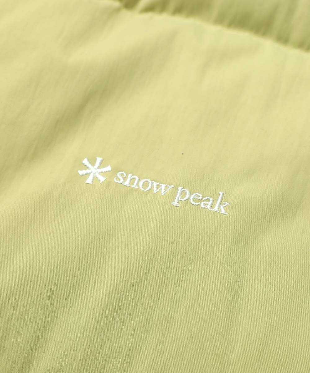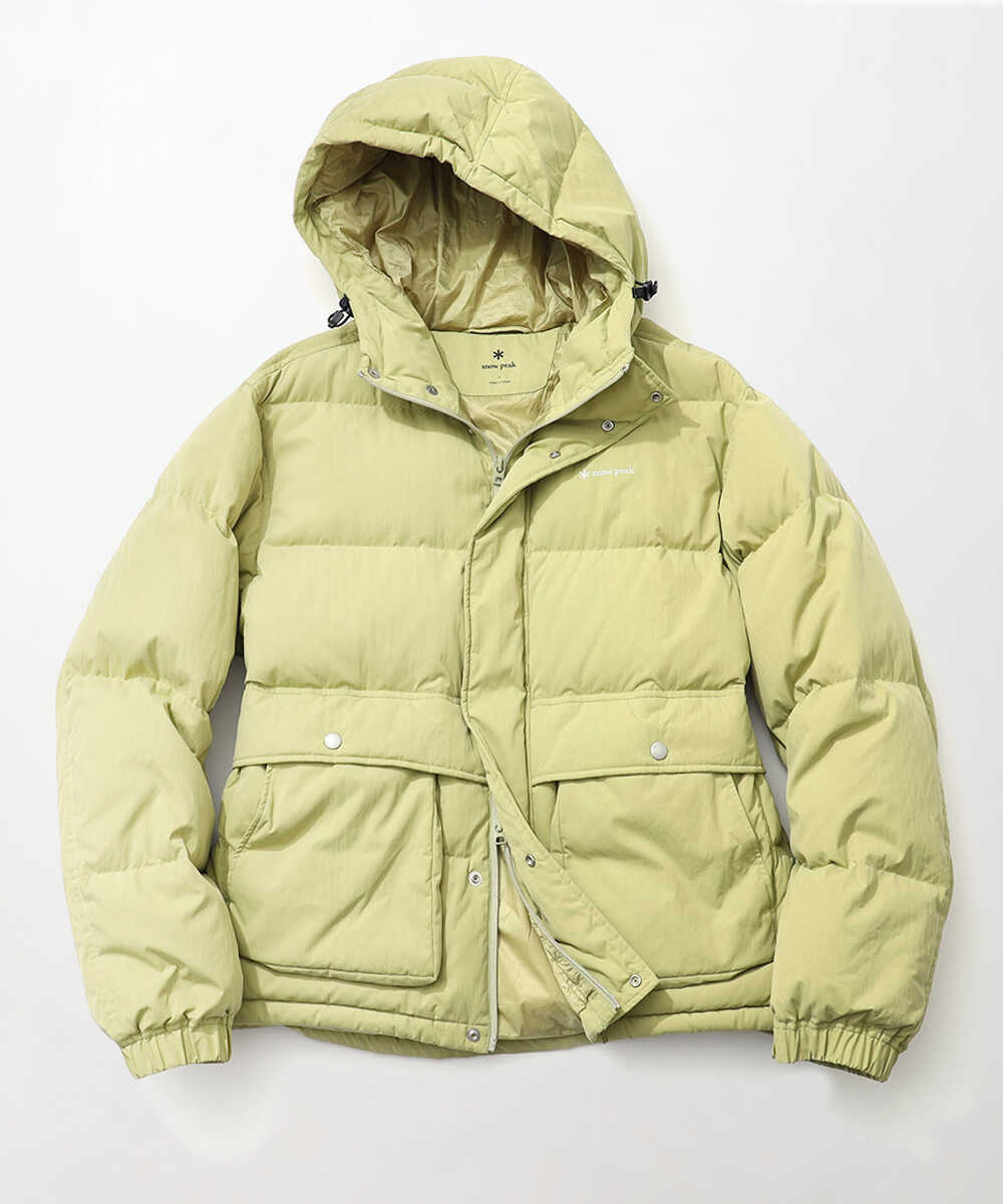 ライトグリーンが爽やかに映えるダウンジャケットはキャンパーにもお馴染みの〈スノーピーク〉。製品染め特有のアタリや味つけを施し、街映えもする1着になっている。アウトドアで厚手の服とレイヤードを想定したゆったりシルエットは、ニットの重ね着にもうってつけ。また、コスパに優れているのも嬉しい!