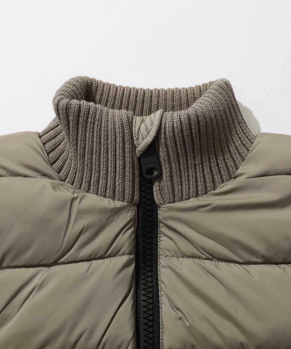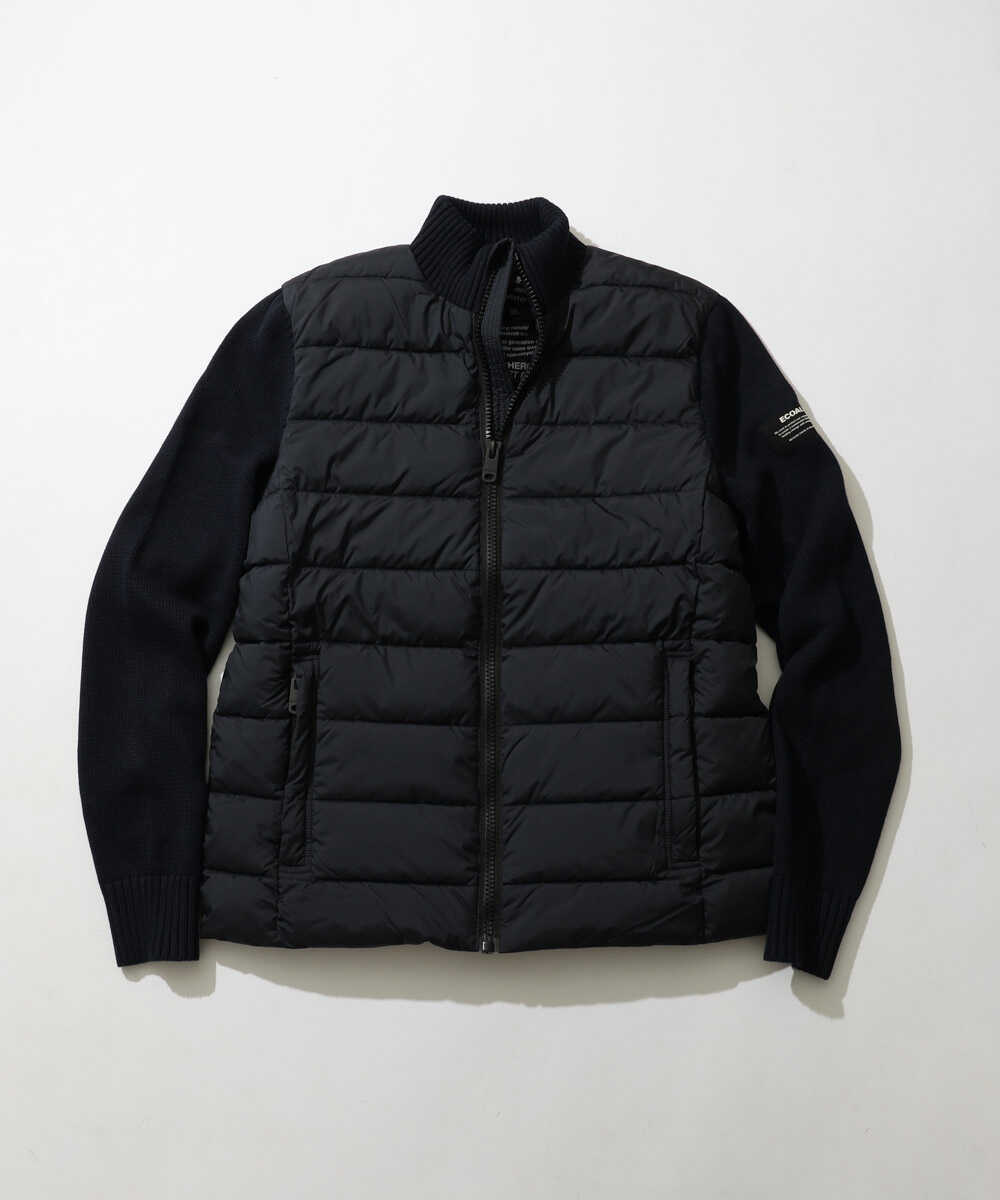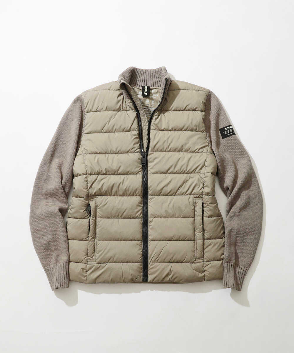 中綿ボディとニット袖で切り替えたブランドの人気ブルゾン"デナリ"に『Safari Lounge』が別注を依頼したスペシャルな1着。通常は首元がフードのところ、大人見えするスタンドカラーになっている。ブランドが掲げる表地と中綿にペットボトル由来のリサイクル素材を採用した、サステナ志向の作りも魅力だ。