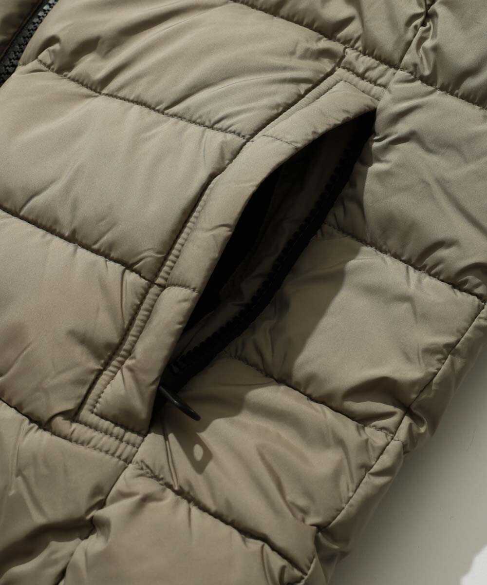 こちらも先ほどのブルゾンと同じくリバーシブル仕様になったベスト。すっきりとしたキルティングデザインが特徴で、ほっこりしすぎない絶妙なバランスだ。表側はスポーティーなキルト面、裏側は上品なマット面になっており、車に乗る際や、アウターからチラ見せで差し色といった具合に様々なシーンで取り入れられるはず。