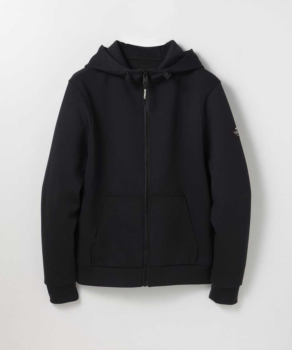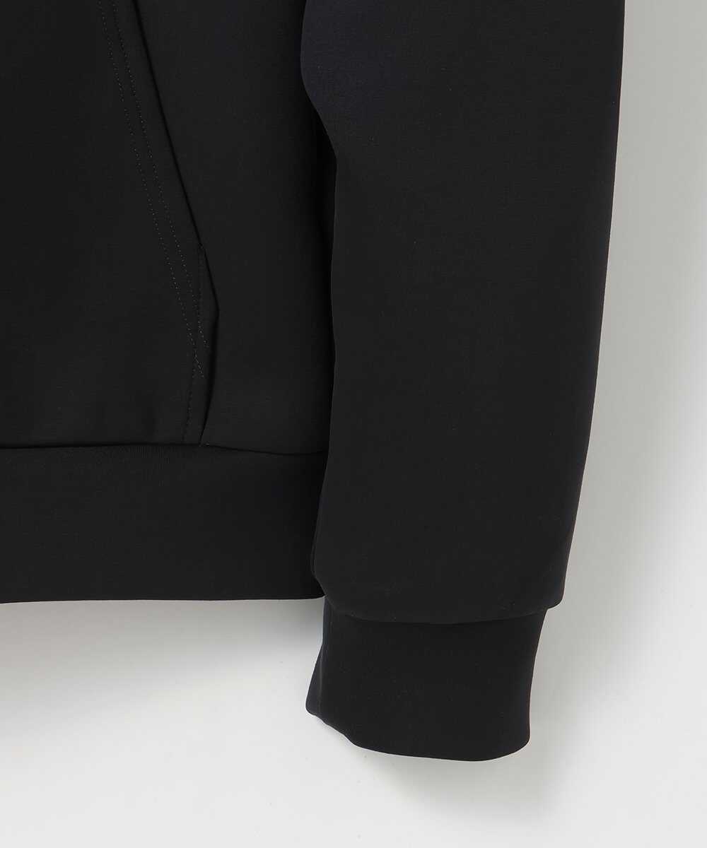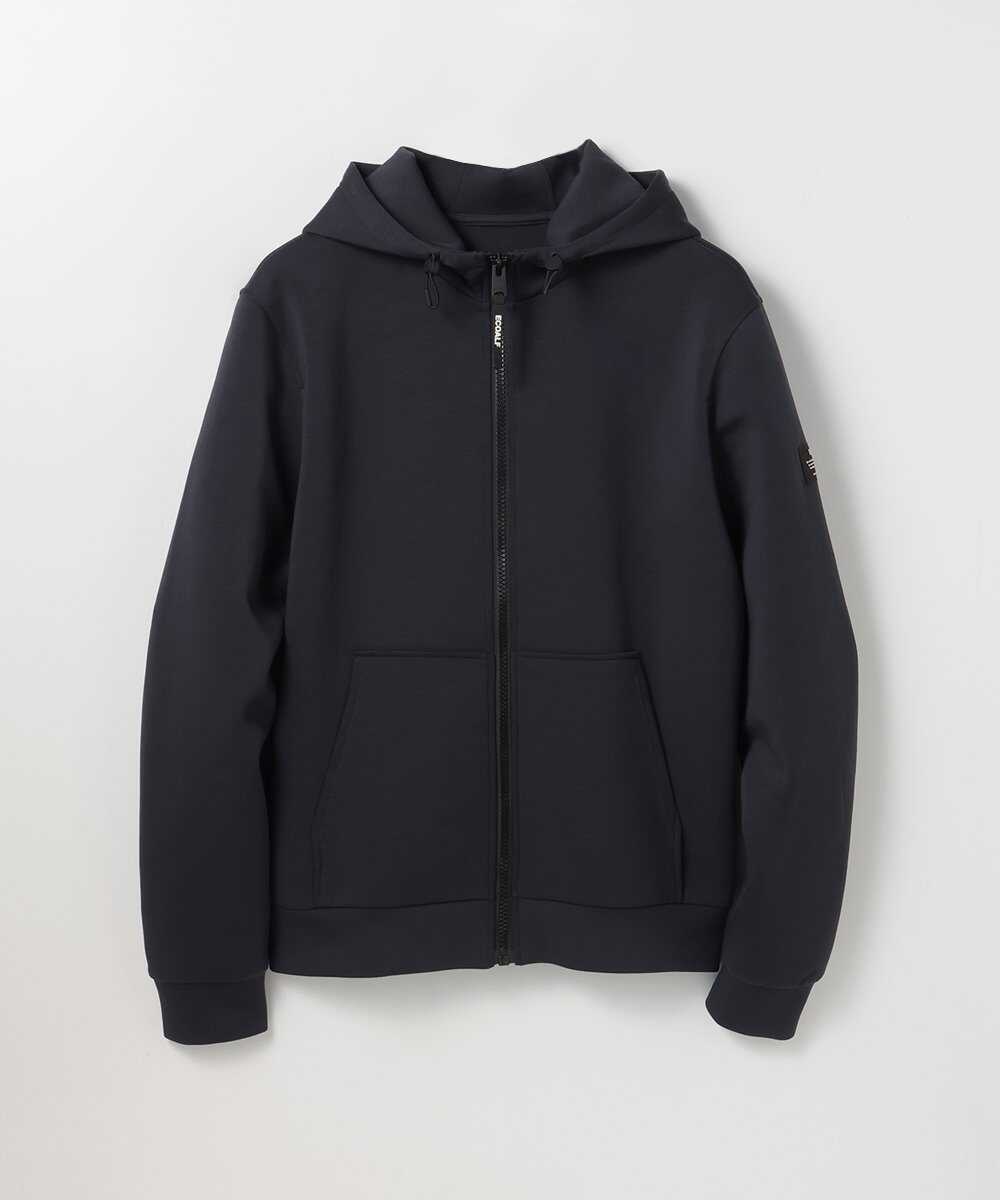 ベーシックなデザインだが、滑らかな生地感で大人見えを実現するジップパーカがこちら。シンプルに見えても、アジャスター付きの立体的なフードや、ロゴ入りのフロントファスナーなど、細部にこだわって仕上げてあるのでご安心を。艶感とほどよいハリを兼ね備えたダブルニット(ダンボール)素材が上品な見た目と快適さを両立している秘密。