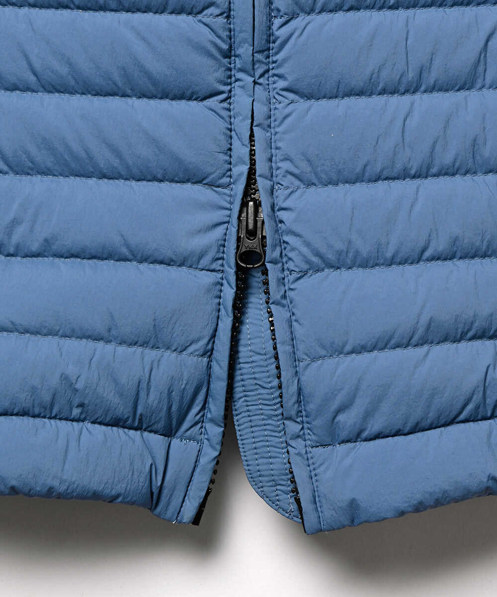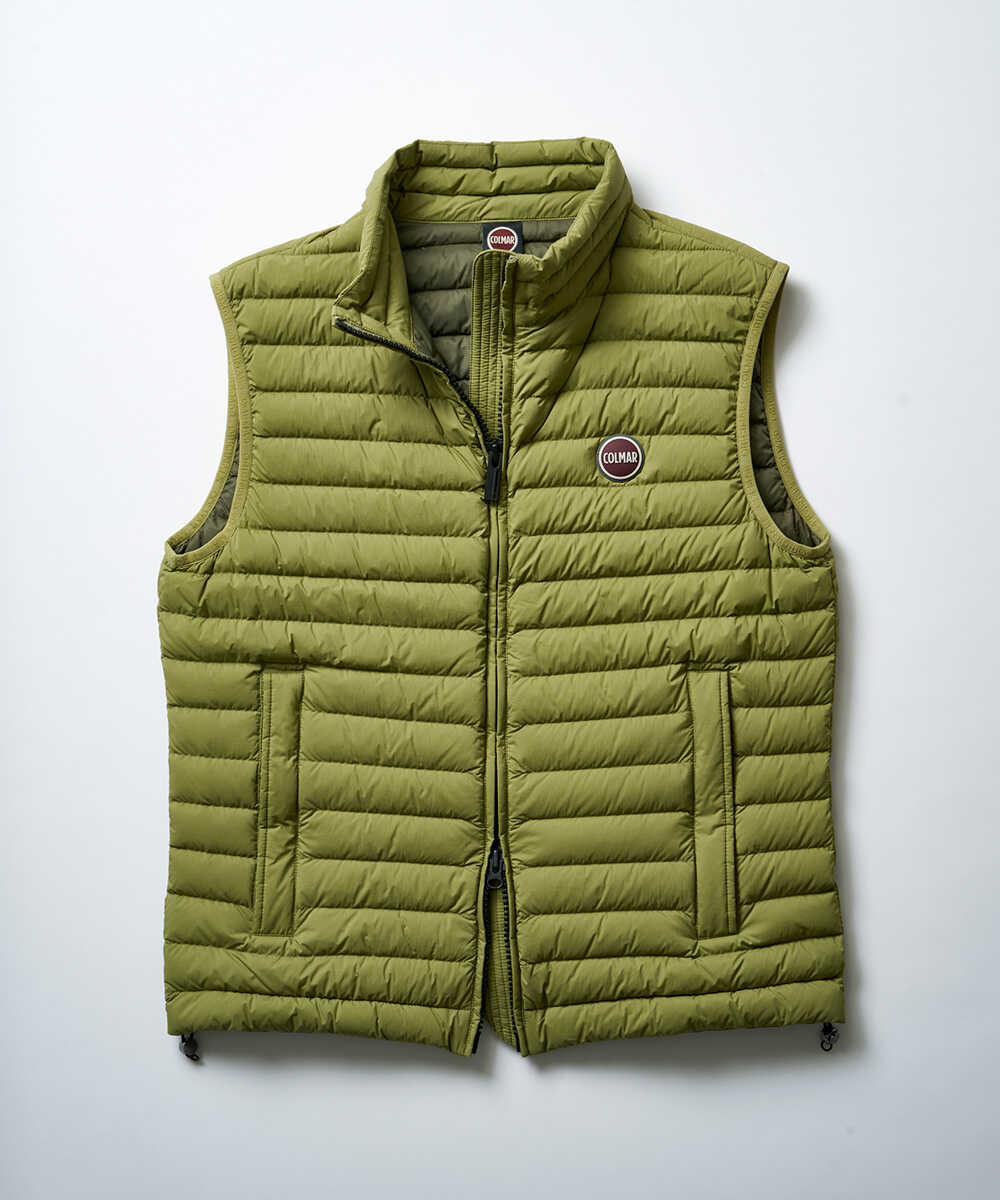 表面にナイロンが使われているオーソドックスなダウンベスト。しかしながら、イタリアブランドらしいスモーキーで上品な色使いと、通常より細くなったダウンパックの見た目により、スポーティさはありながらも大人な雰囲気。パーカやスウェットなどと合わせても、だらしないスタイルには陥らない。愛犬との散歩やワンマイルに差がつけられるアイテムだ。