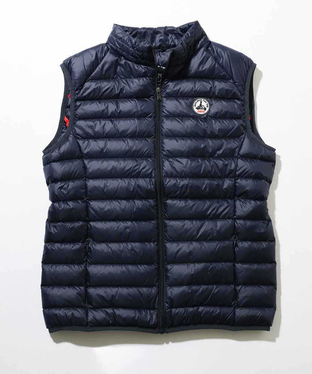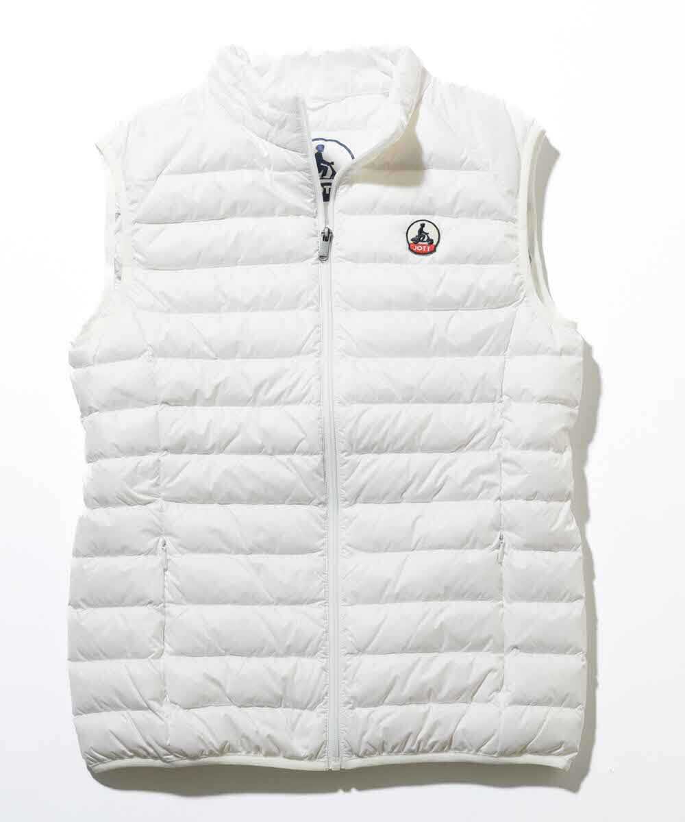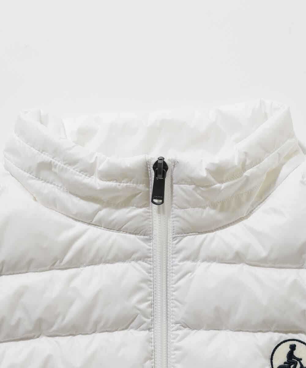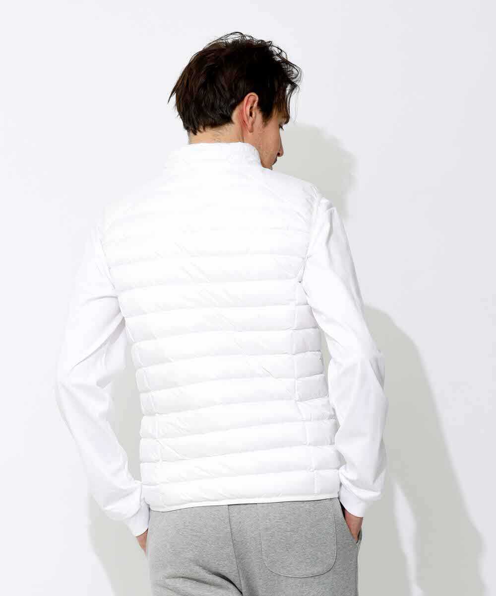 胸のワンポイントがよりスポーティな雰囲気に見せてくれるダウンベスト。こちらはベストと同系色のスウェットシャツやカットソーなどと合わせて着こなすといい。もちろん使うのはスポーティなシーン。胸のマークにあるように、スクーターに乗るときに使うのもあり。またコンパクトに畳めるので、旅行に持っていくにも便利だ。