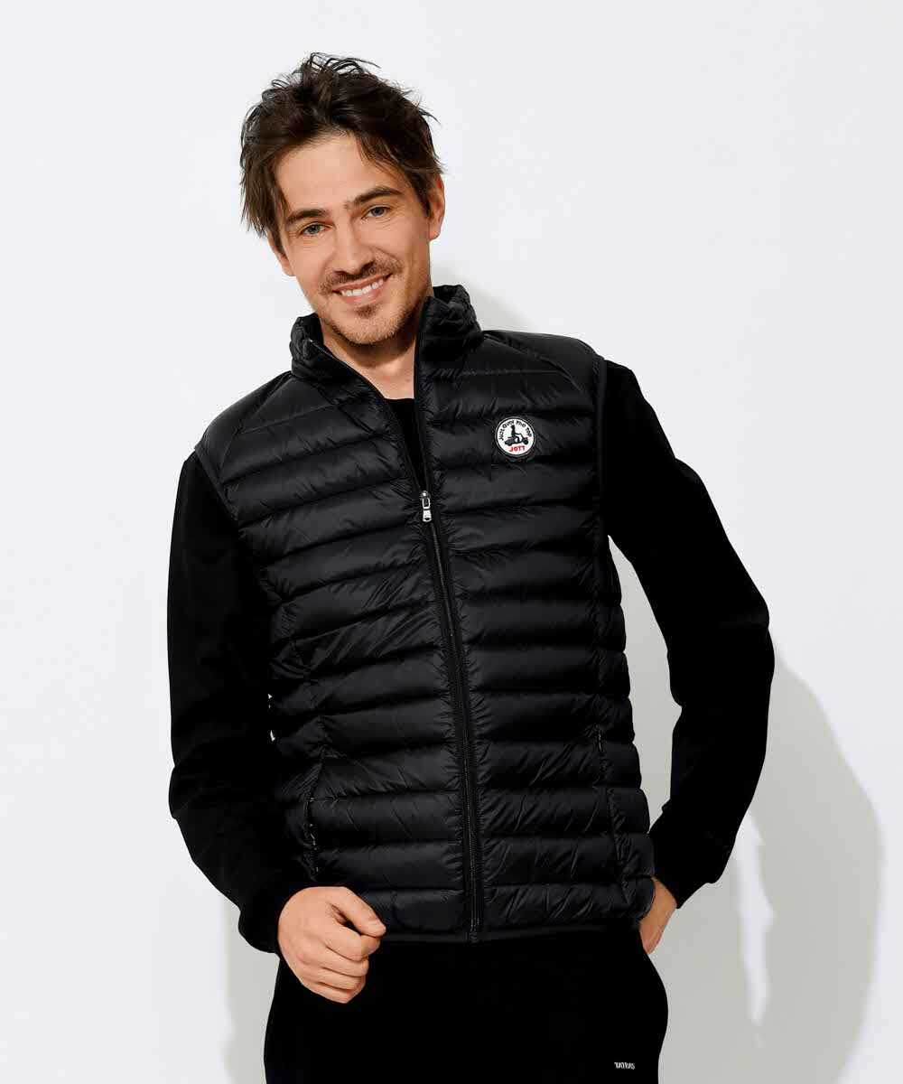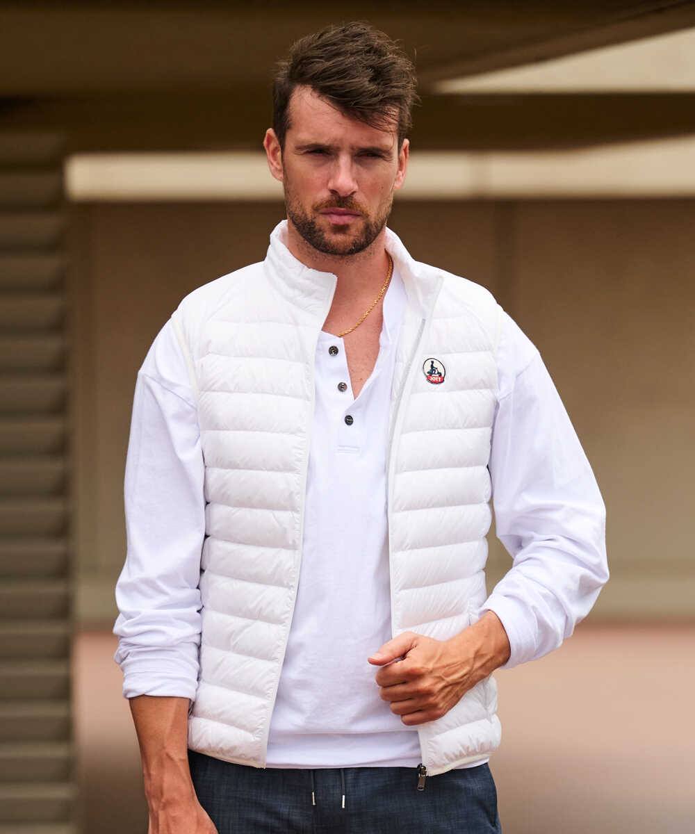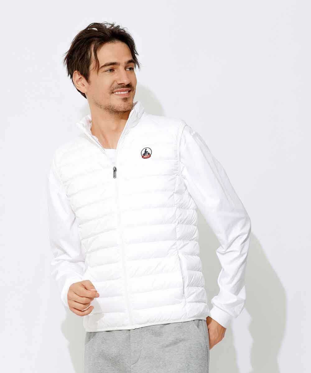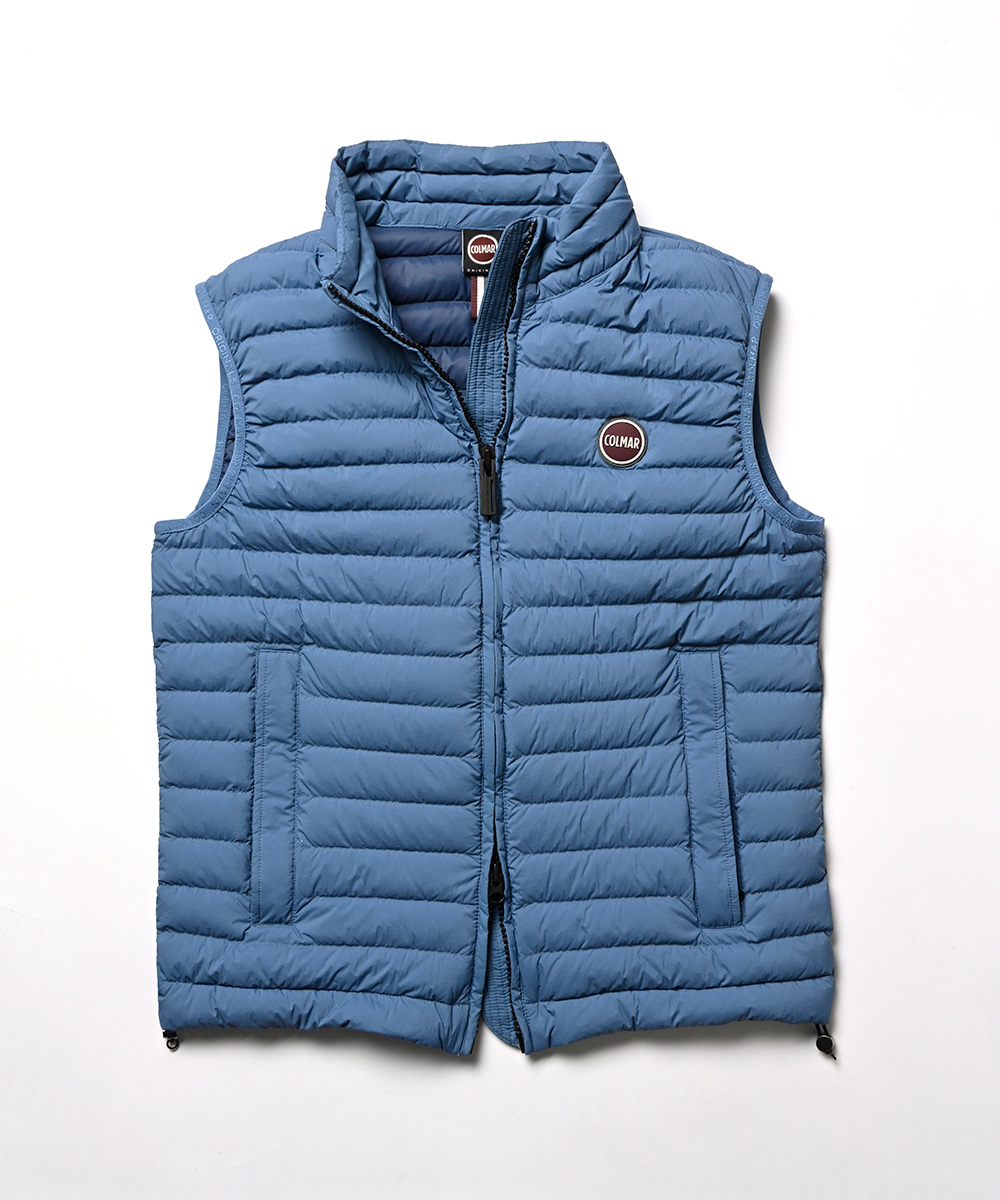 胸のワンポイントがよりスポーティな雰囲気に見せてくれるダウンベスト。こちらはベストと同系色のスウェットシャツやカットソーなどと合わせて着こなすといい。もちろん使うのはスポーティなシーン。胸のマークにあるように、スクーターに乗るときに使うのもあり。またコンパクトに畳めるので、旅行に持っていくにも便利だ。
