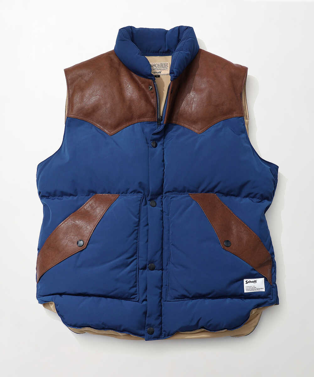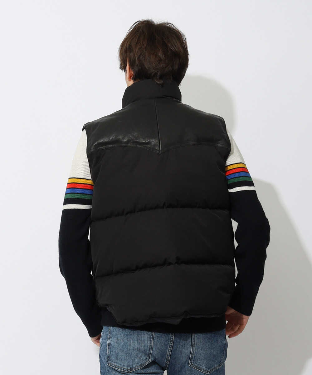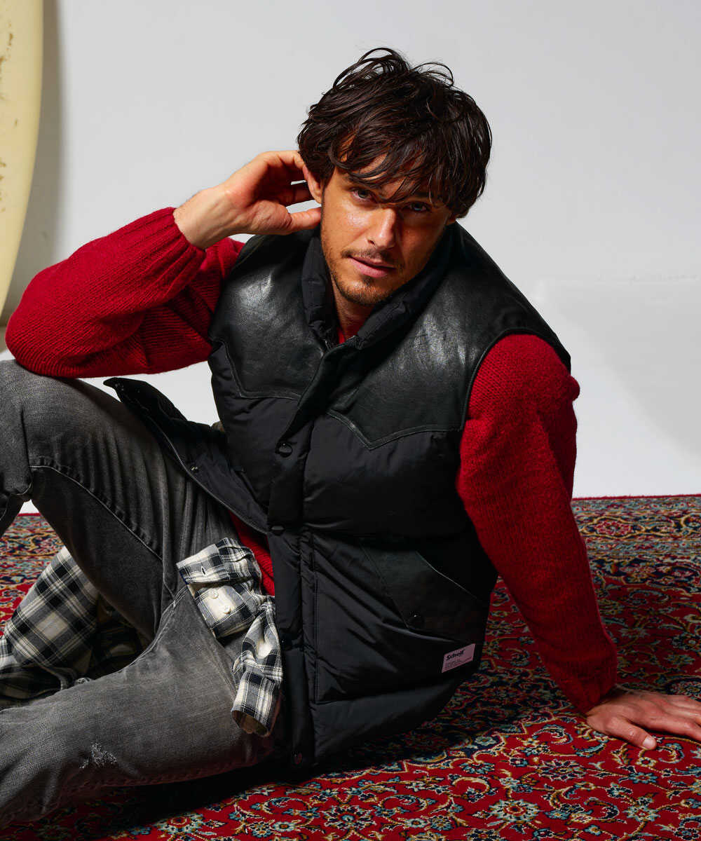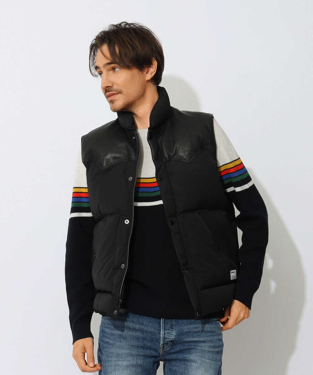 こちらは王道なアメカジ系な見た目のダウンベスト。レザーとのコンビになったスタイルはまさにカウボーイなどにも愛されたもの。デニム好きにはたまらないダウンベストだろう。ランチャーパンツやブーツカットデニムに合わせてもいいし、カウチン系のニットなどとも相性がいい。いくつになってもアメカジ好きの大人に是非手に入れてほしい。