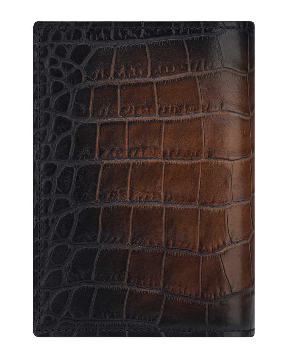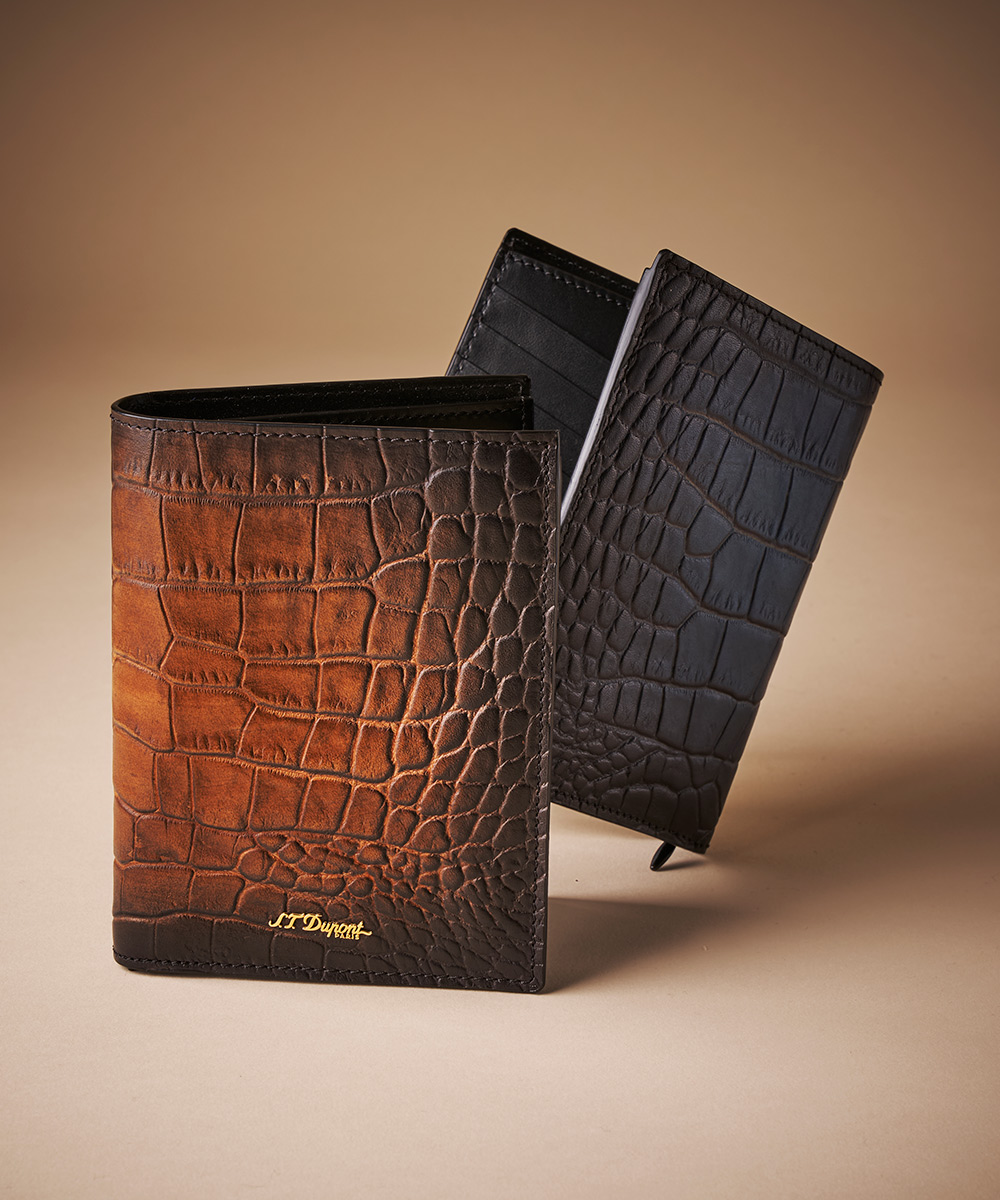 1872年のブランド創業時の職人技術を彷彿とさせるカラーリングとコントラストが美しい、クロコの型押しの2つ折り財布。小銭用のファスナー付きポケットや多くのクレジットカード用ホルダーを備え、紙幣やレシートなどを収めるコンパートメントもしっかりある。パスポート風のサイズ感で、見た目にもスタイリッシュなこちらはお札も持ち歩きたいけど、なるべく財布はコンパクトにしたいという人向け。
