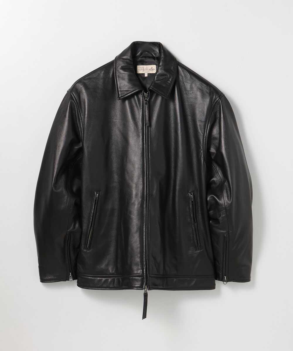 襟付きの1着は品のよさもあり、、ハードになりすぎずに着用できるのが嬉しい。都会派レザーは1着あると重宝すること間違いなし。