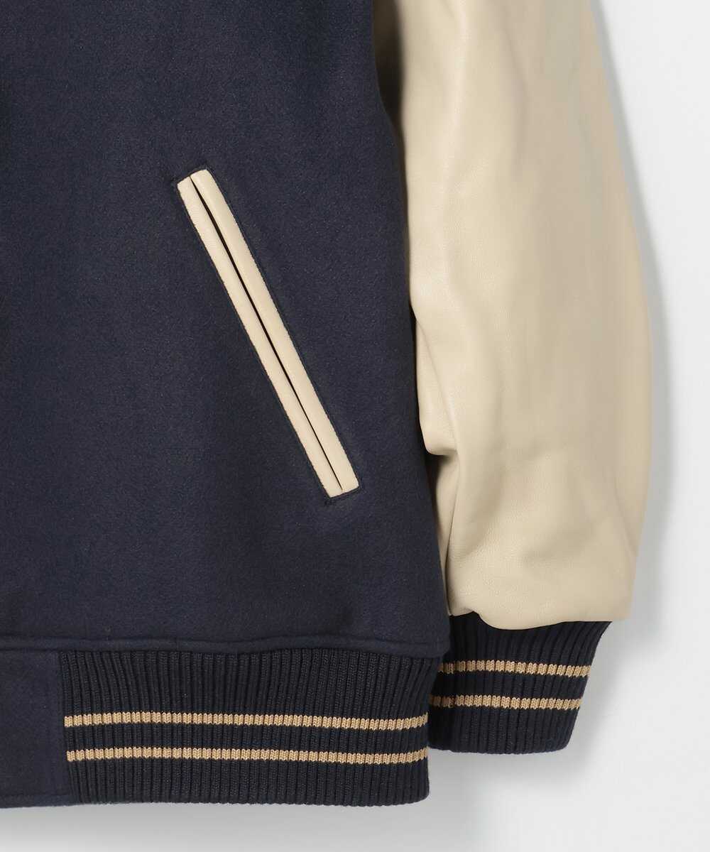 着るだけでサマになる主役級のスタジャン。ともすれば子供っぽく見えがちな1着は、胸のワッペンや刺繍にブランドのアーカイブデザインをあしらい、細かな部分までこだわりを見せ大人な雰囲気に。また、裏地にはキルティングをあしらい、これからの季節に役立つ保温性を確保。そして、重厚感があるが、身頃にはポリエステルメルトンを使用し、通常のメルトンより軽量で快適なのも特筆すべきポイントだ。