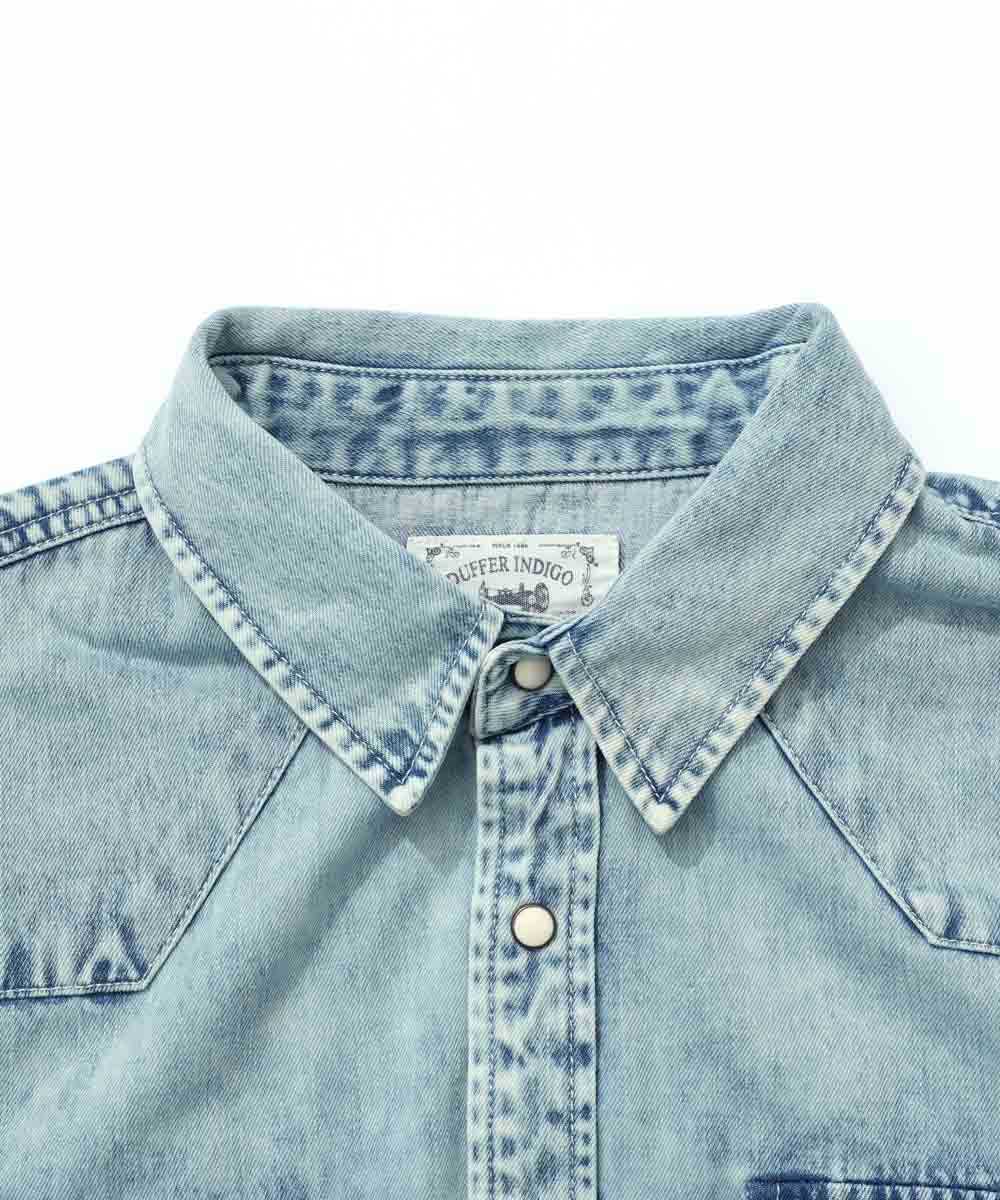 ヴィンテージの1着と見間違うようなヨーク切替やフラップポケット、アンティーク調のスナップボタンなど、王道のディティールを備えたデニムシャツ。こなれ感抜群の色落ち加工は必見。それでいて、ソフトな肌当たりでごわつき感がなく、ストレスフリーな着心地。