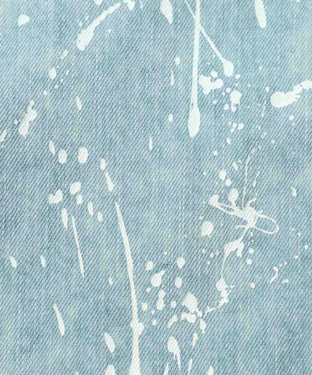 こちらは先ほどの1着のように確かなディテールを押さえつつ、さらにユーズドウォッシュをあしらい、仕上げに波飛沫のようなペイントを加えた1着。スナップボタンのヘッドもペイントと同じ白で揃えた配色になっており、完成度の高さが伺える。