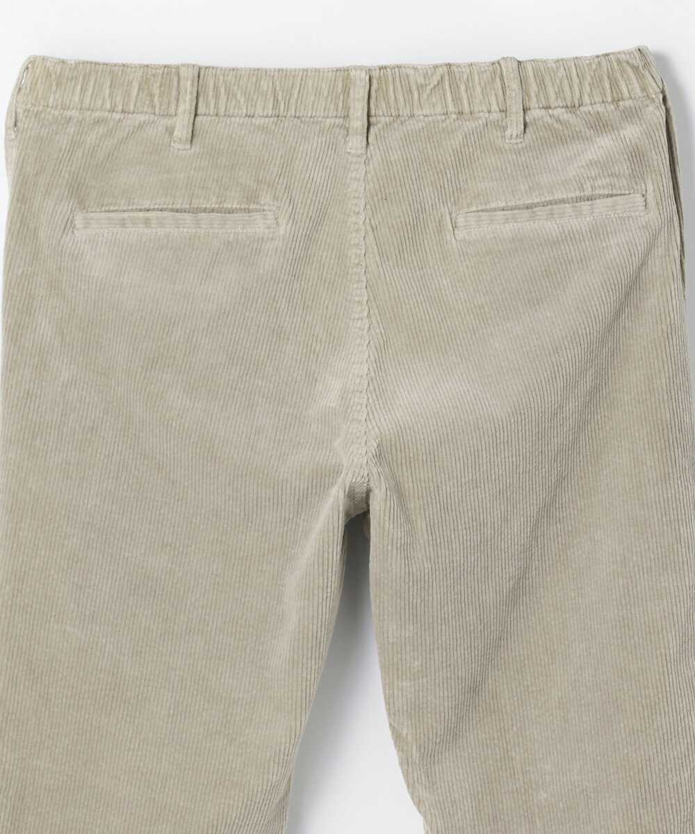 スラックスを意識した作りとスラっとした細身のシルエットで、古臭くなりがちなコーデュロイパンツを今どきな見栄えに仕上げた秀作。さらにストレッチ入りで細身でもストレスフリーな穿き心地を味わえる。製品染め加工でこなれ感も十分だ。