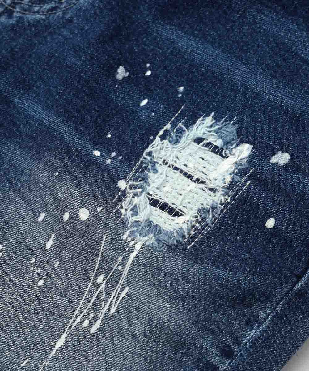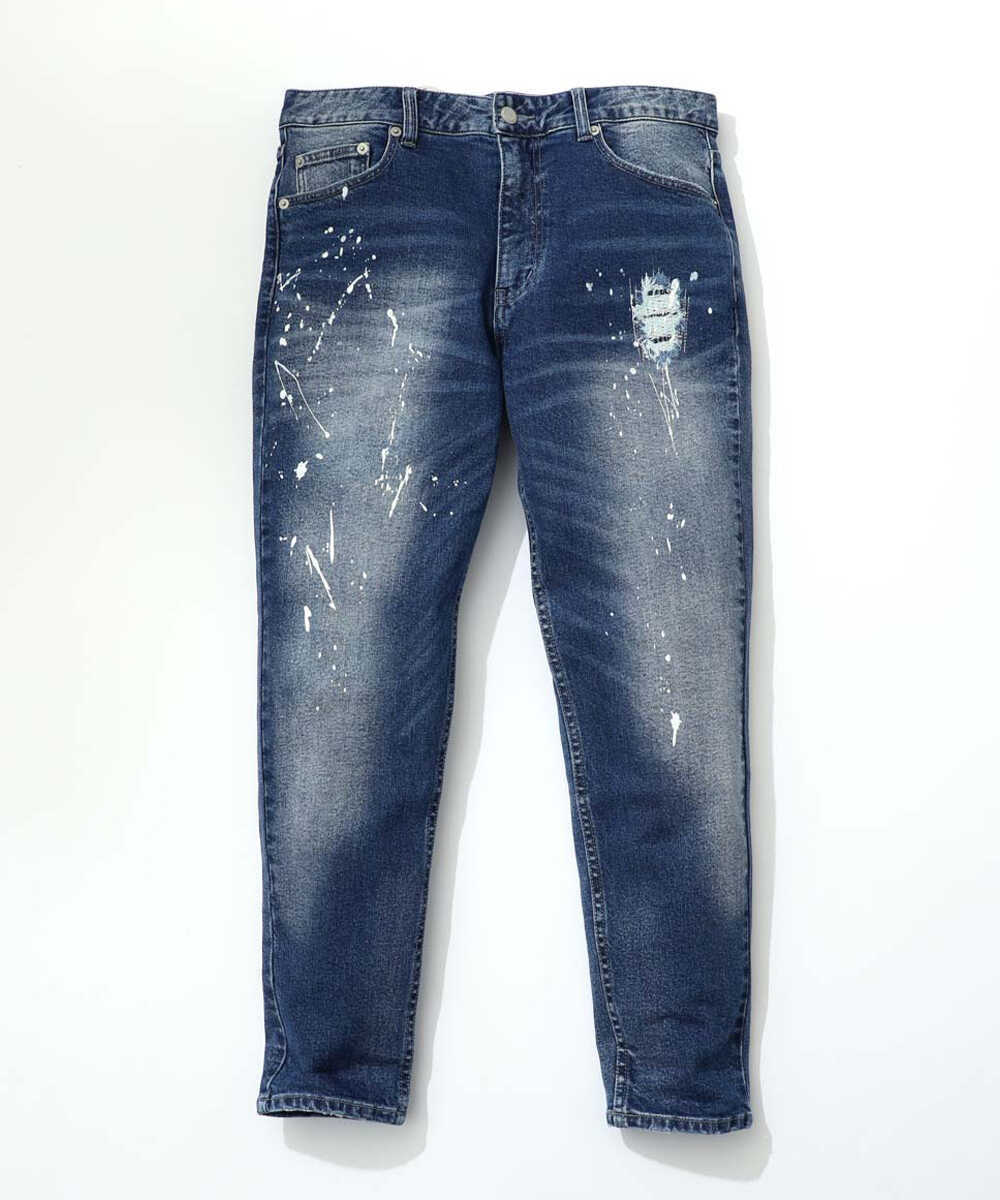 驚きの超伸縮性とキックバック力を誇る、レッグラインが美しく見えるタイトフィットデニム。脚に沿う美しいシルエットは、シワがつきにくく、締め付け感が少ない驚きの仕上がりだ。生地だけでなく、クラッシュ加工や散りばめられたペイントも必見。